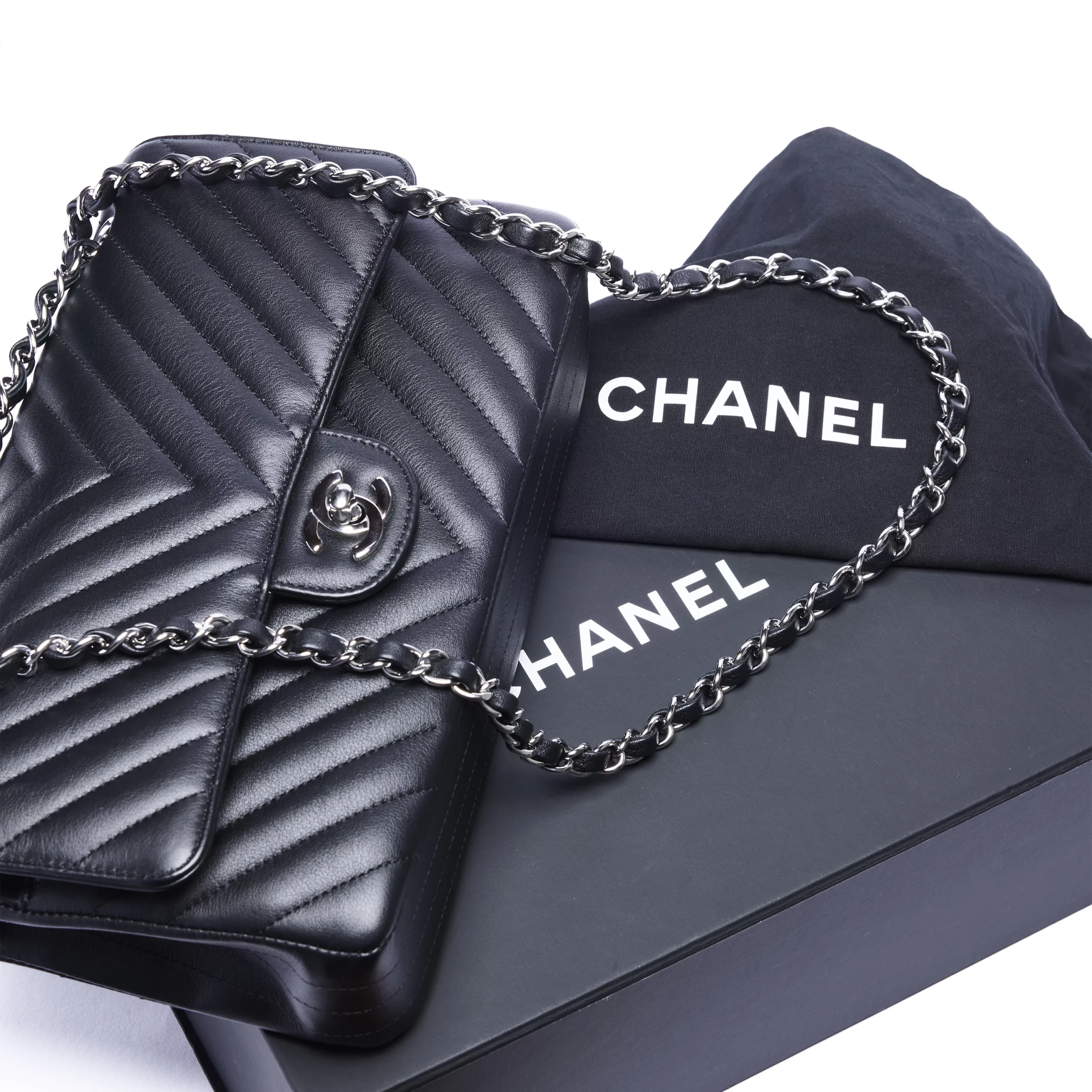 Chanel Classic Chevron Double Flap Medium Leather Bag