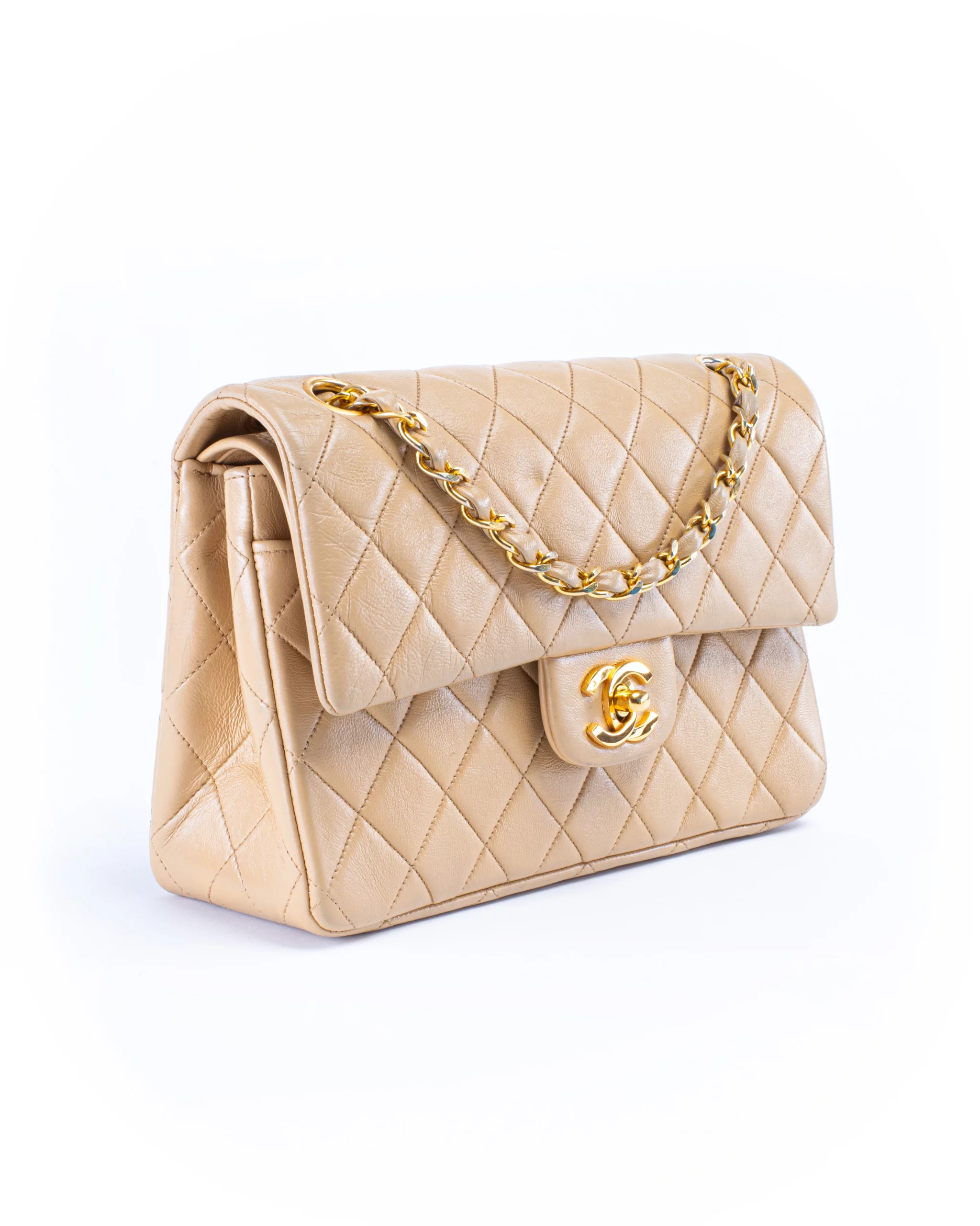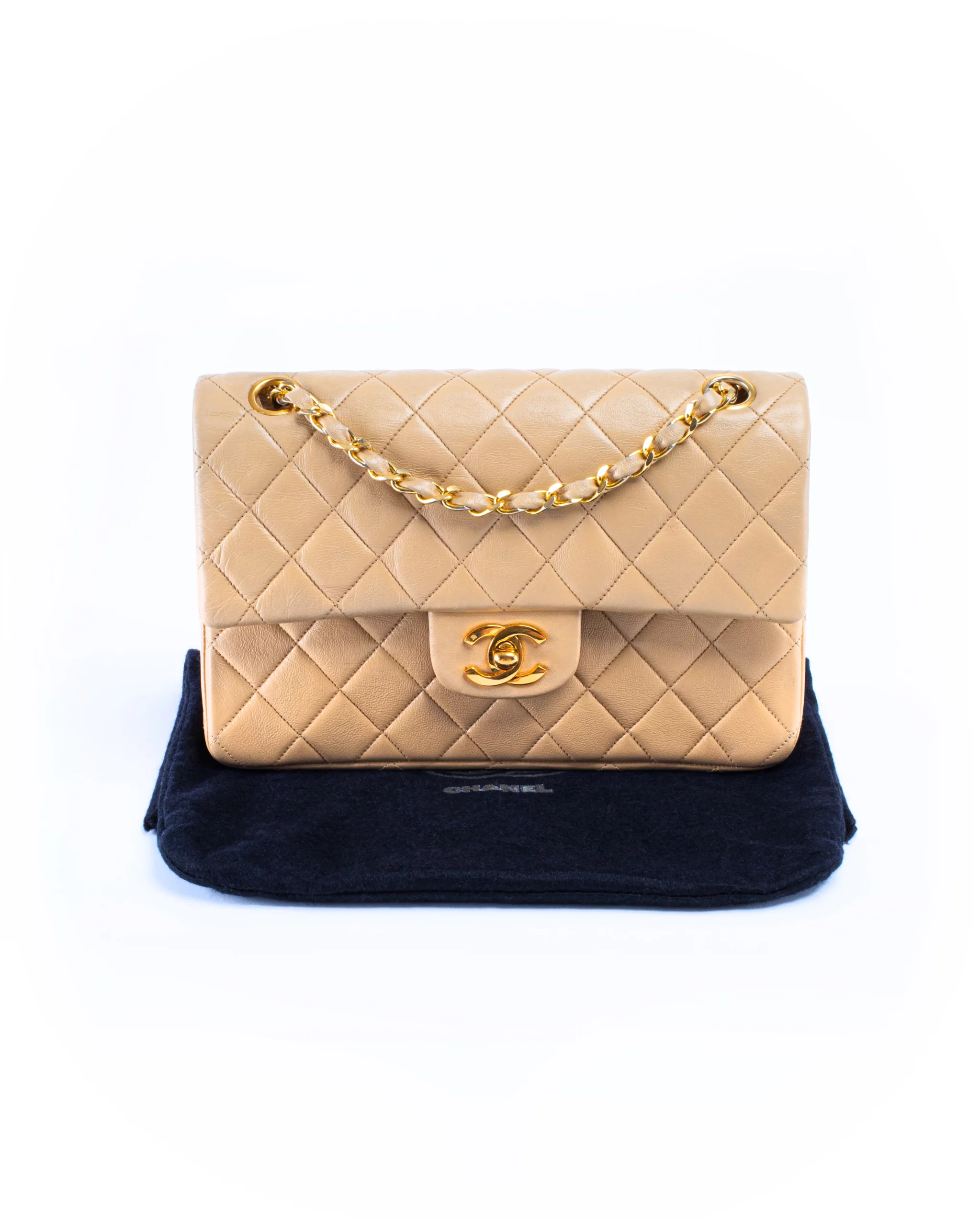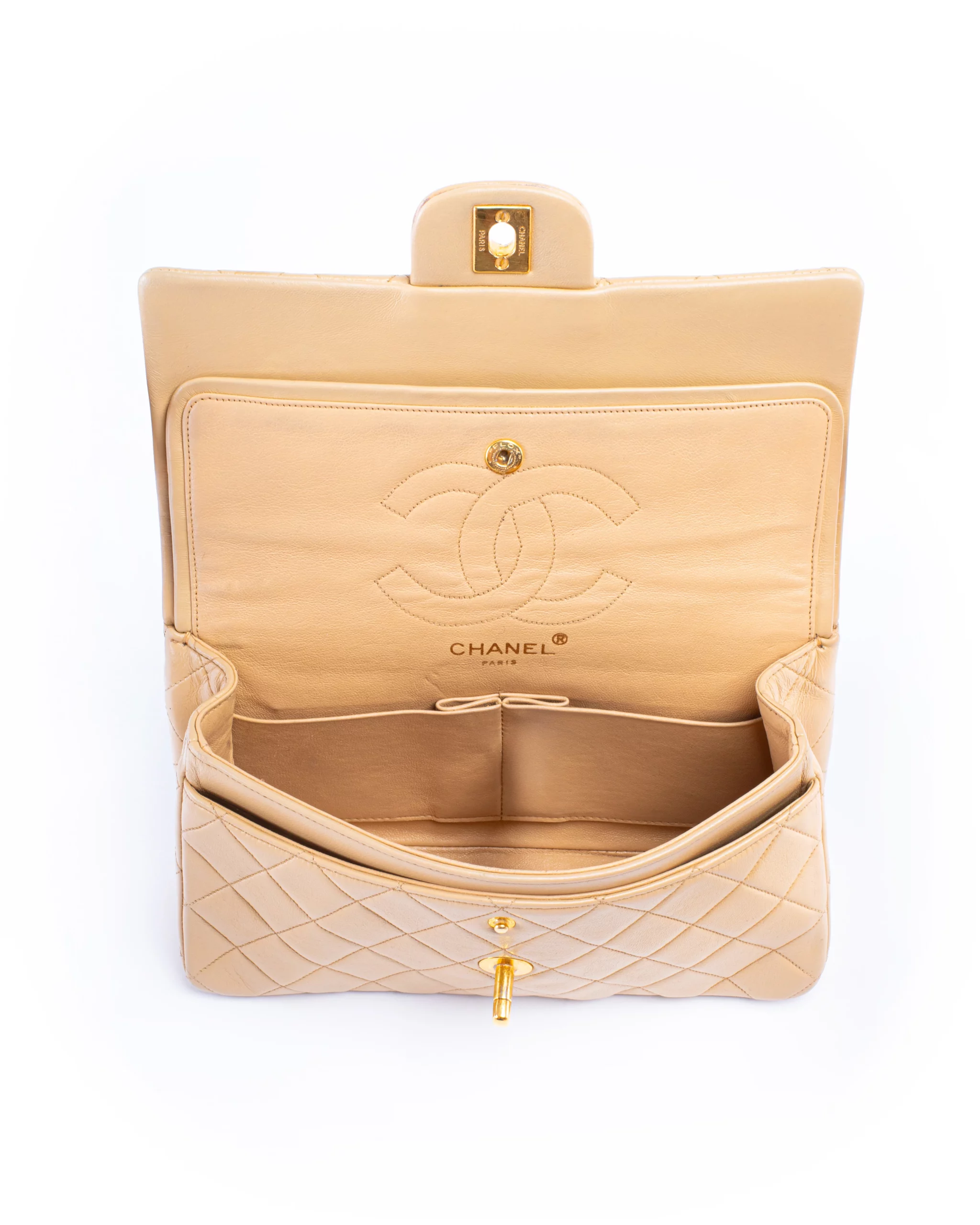 Chanel Classic Double Flap Small Beige Leather Bag