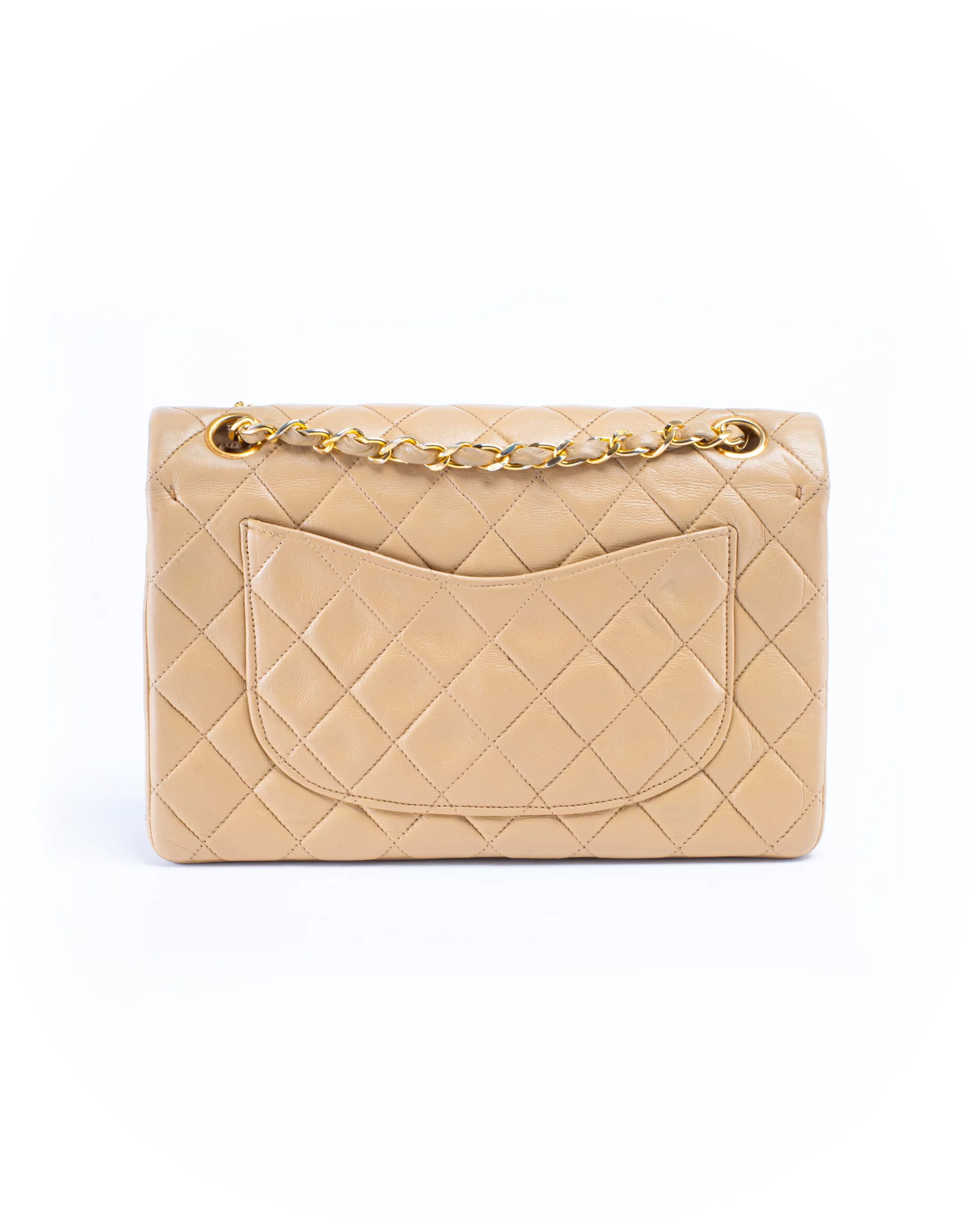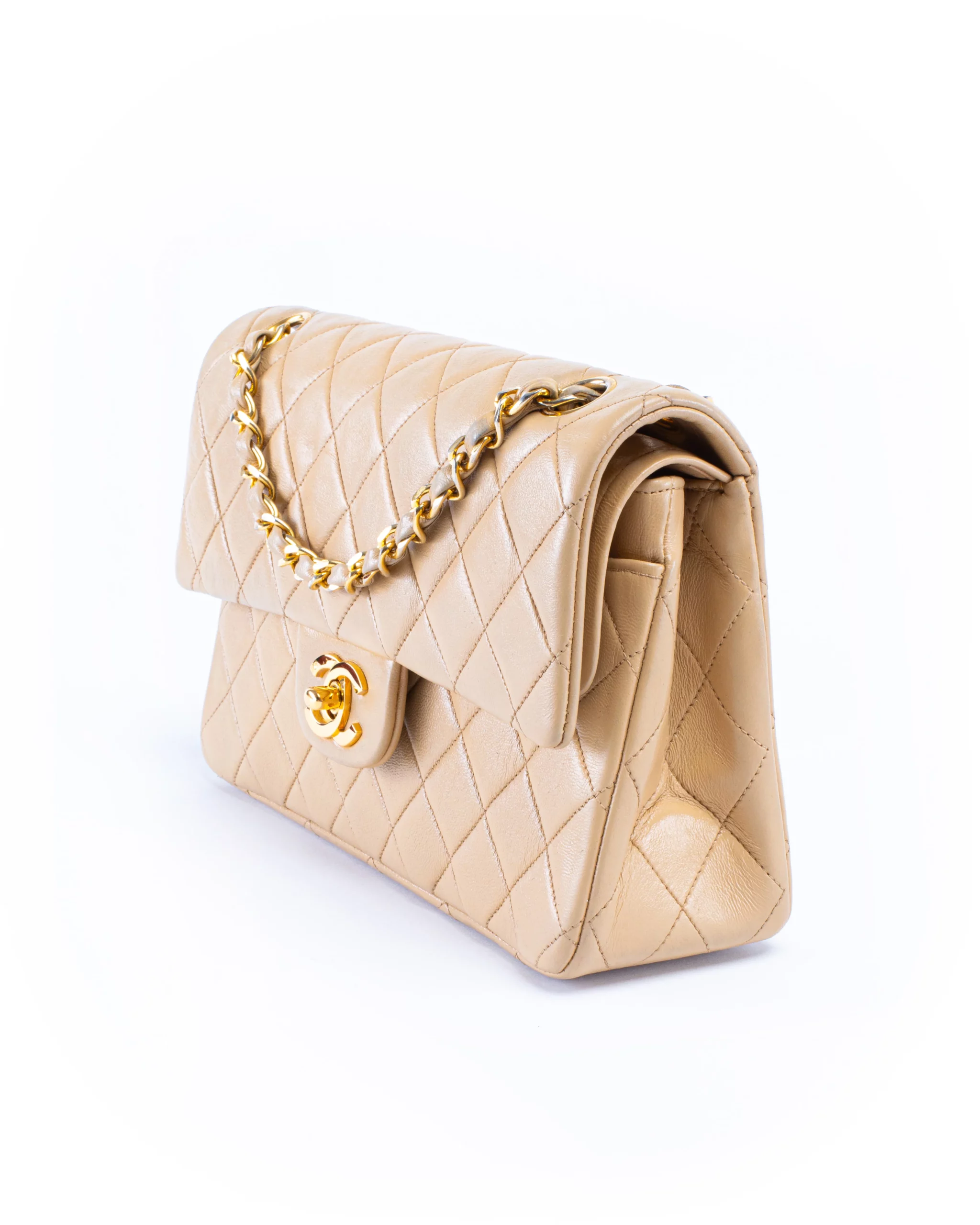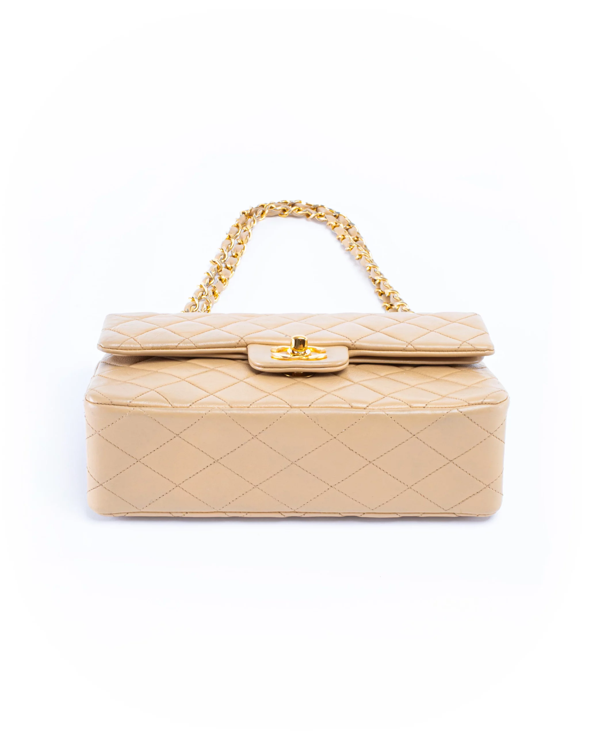 Chanel Classic Double Flap Small Beige Leather Bag