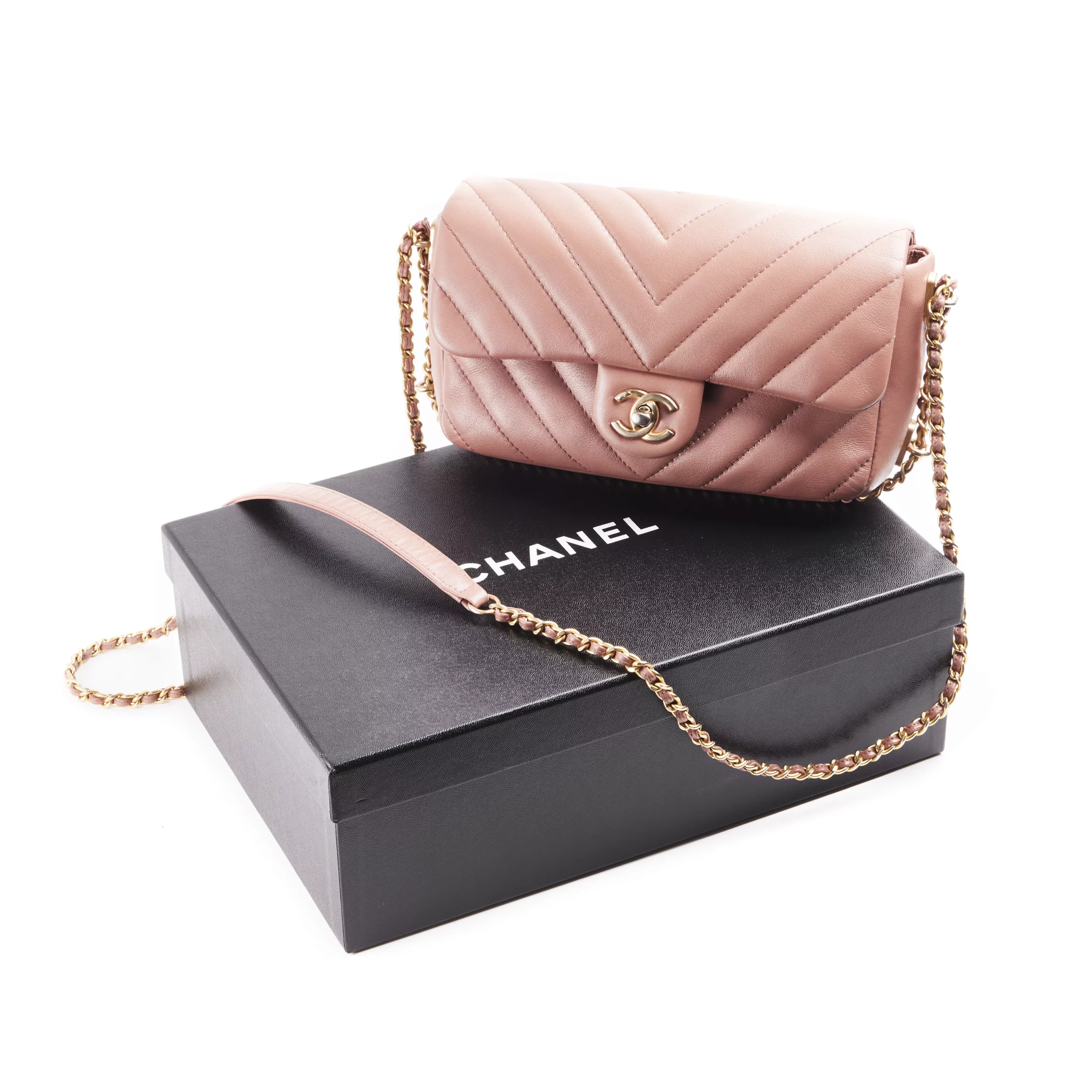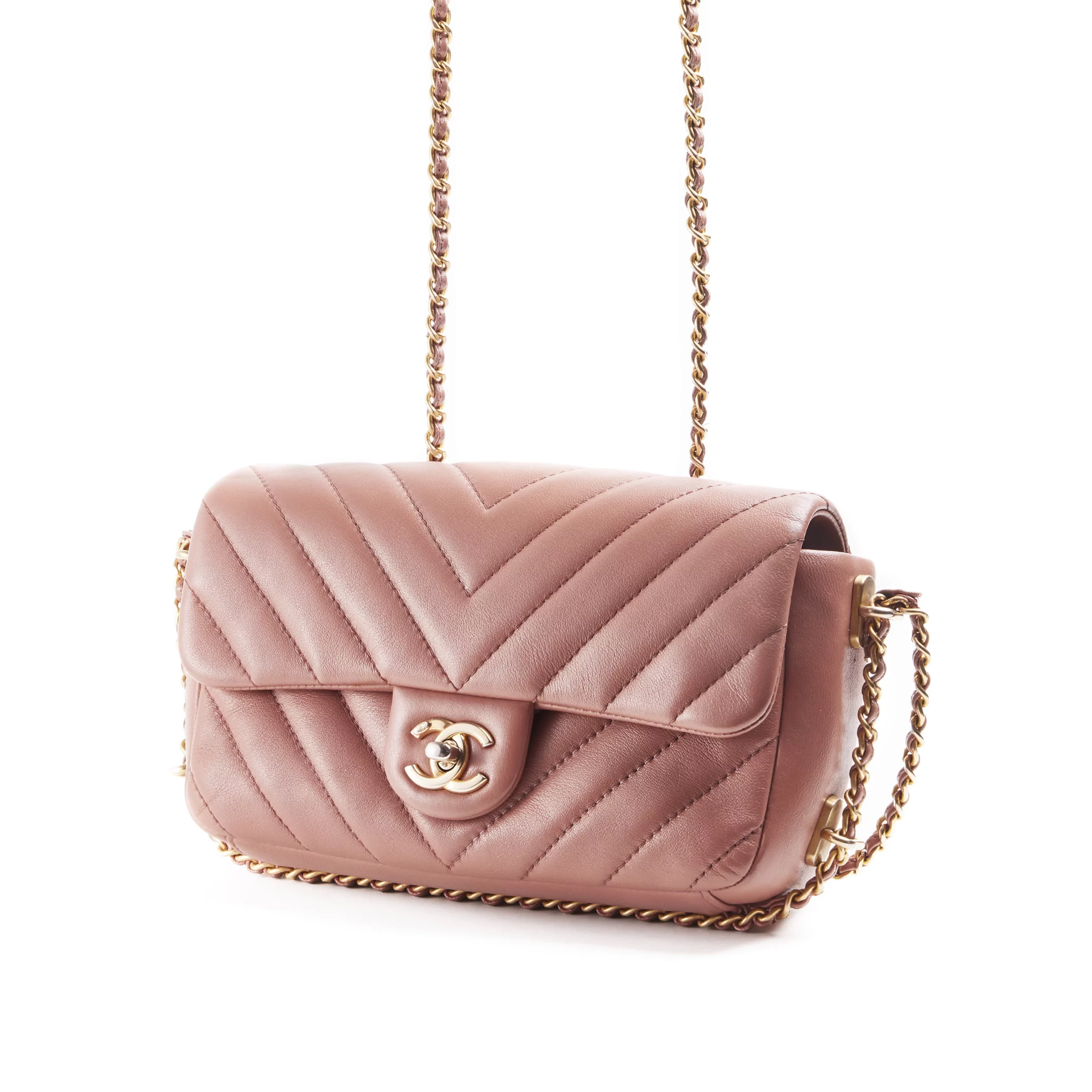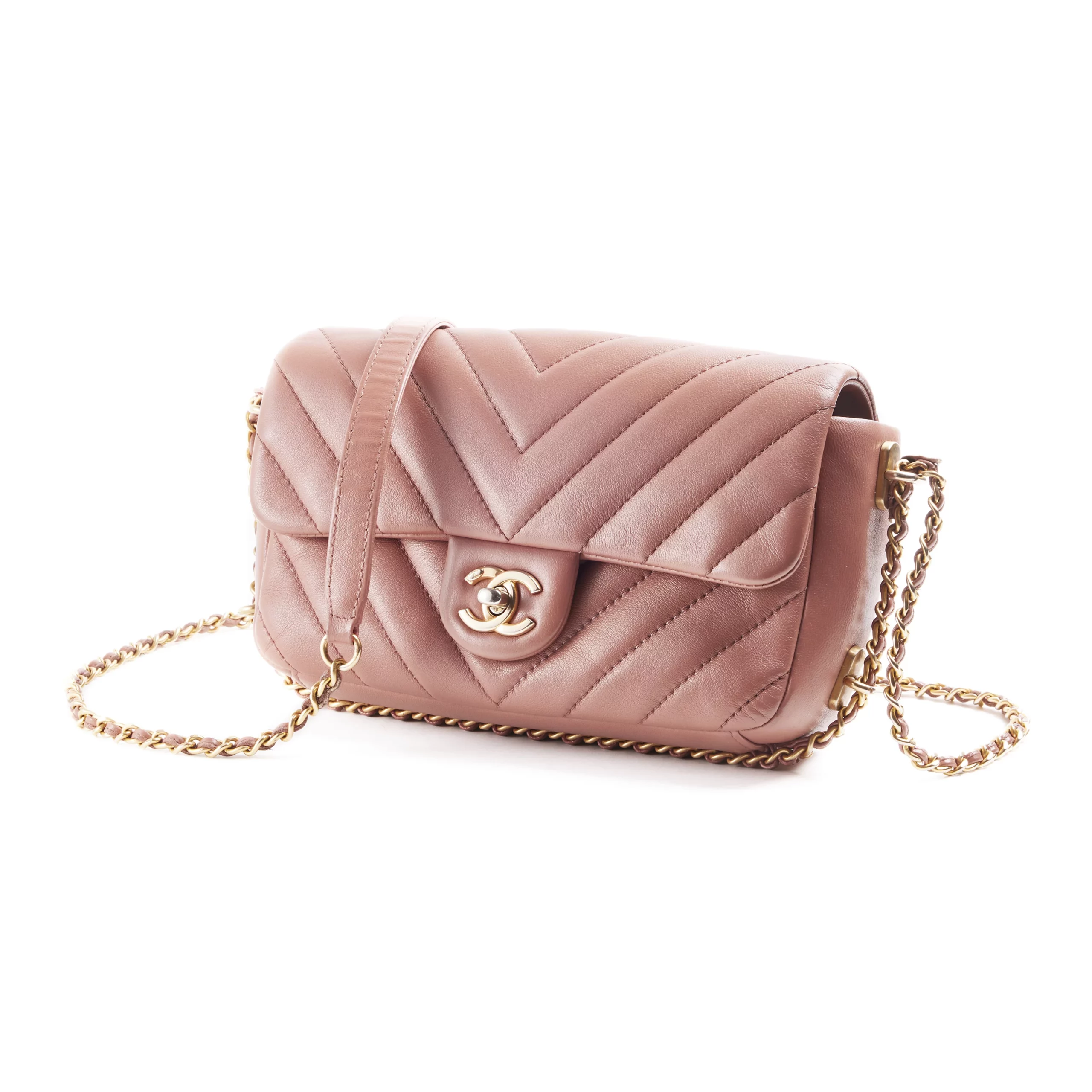 Chanel Mini Pink Chevron Leather Bag