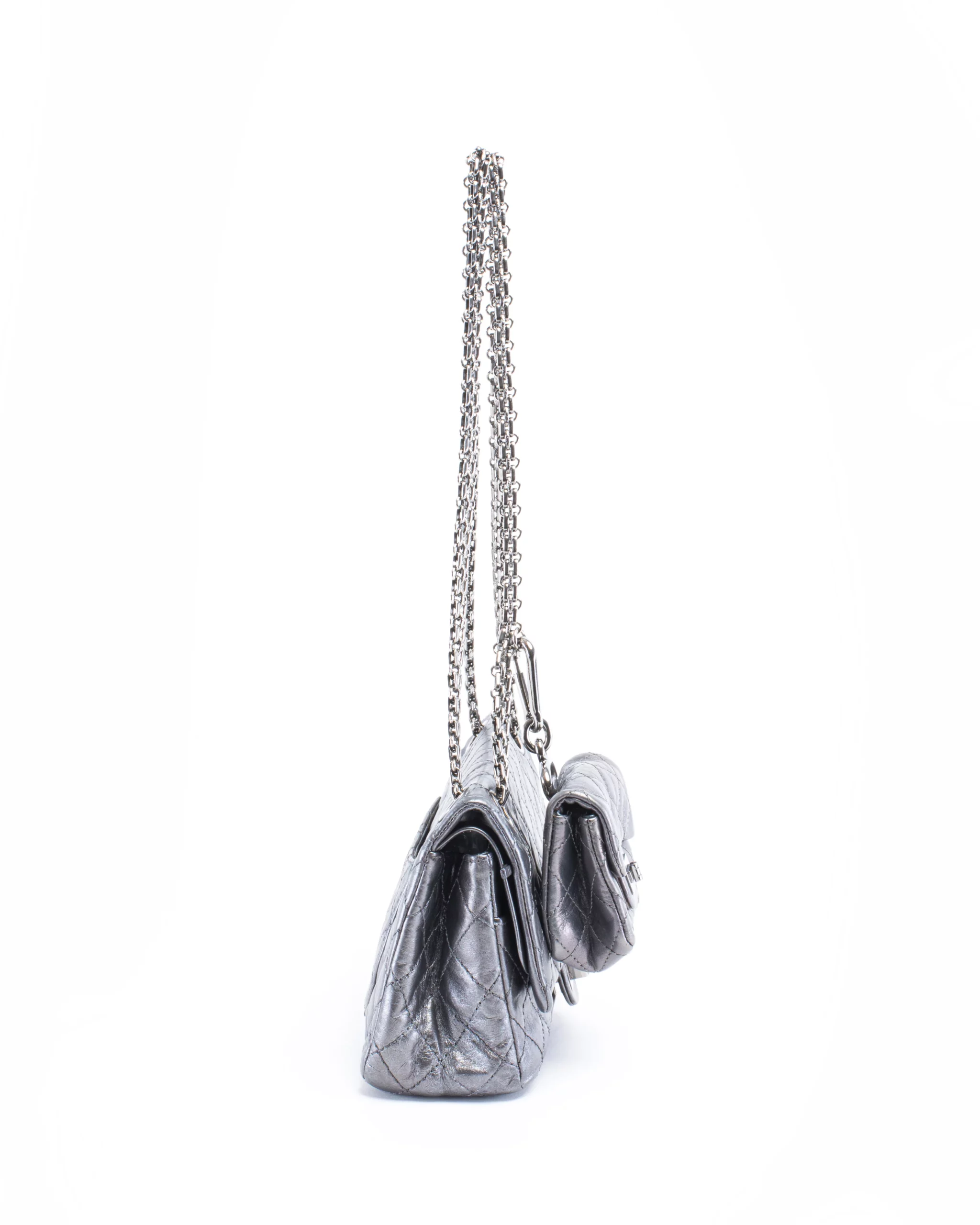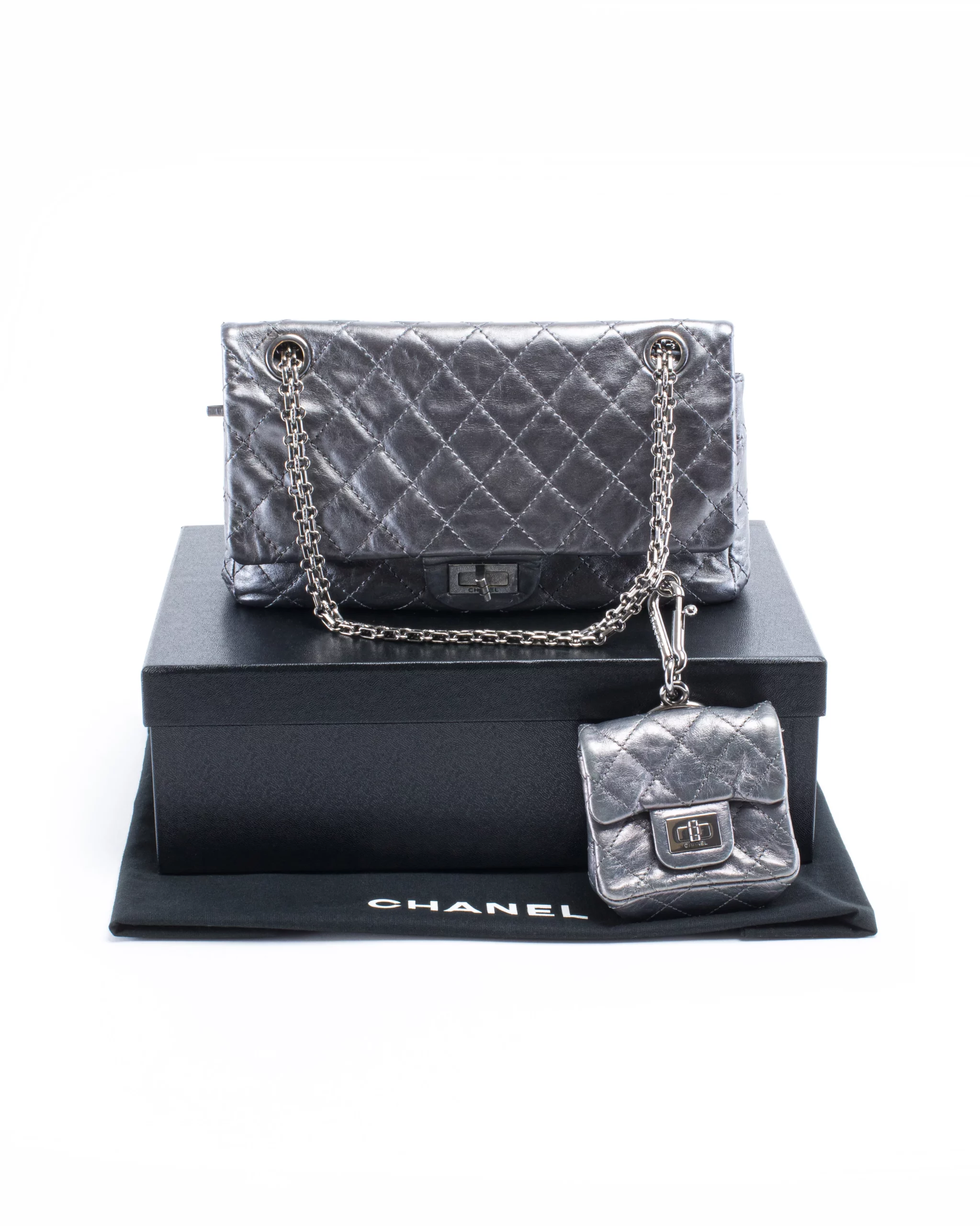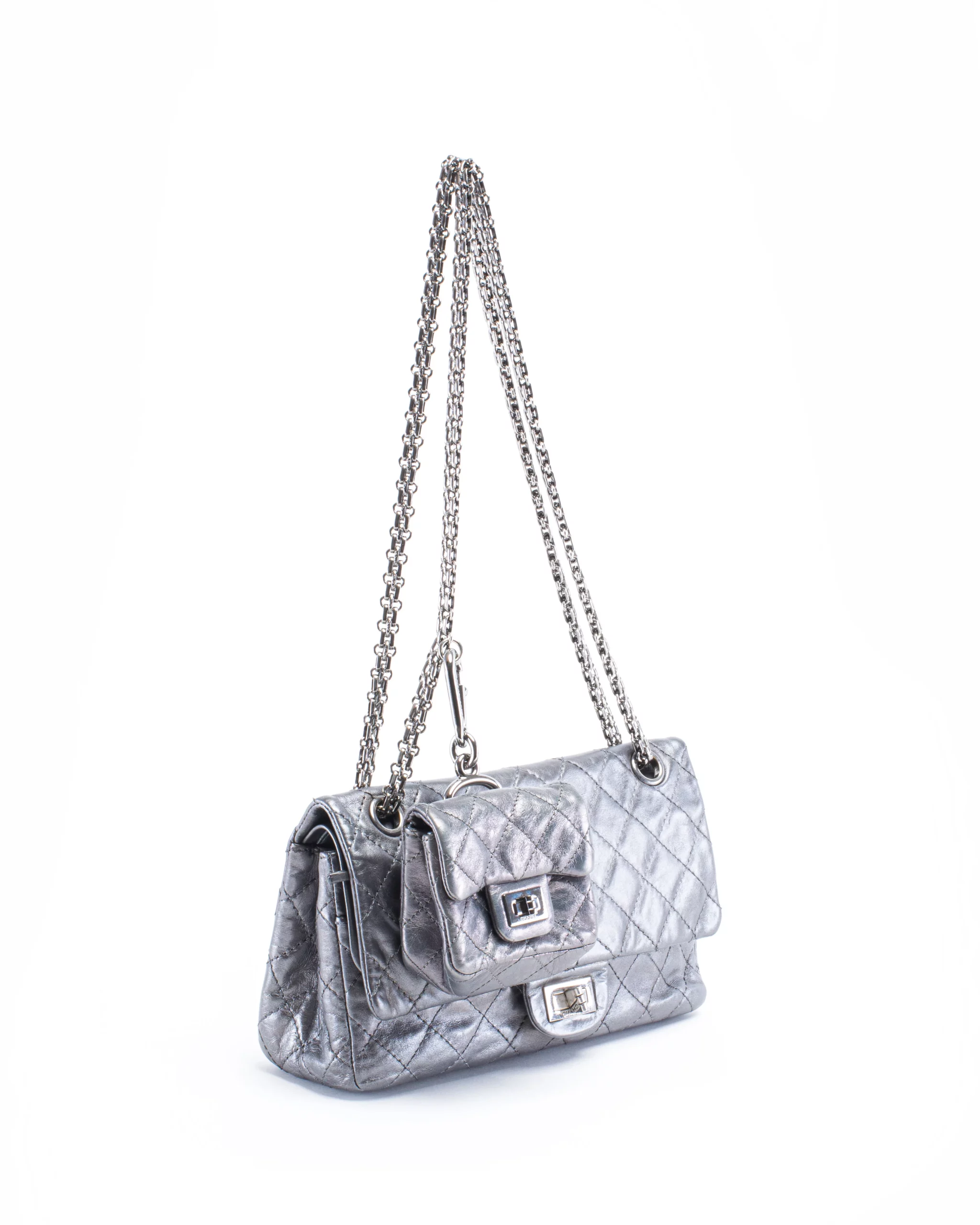 Chanel Reissue 2.55 Silver Leather Bag with mini flap bag