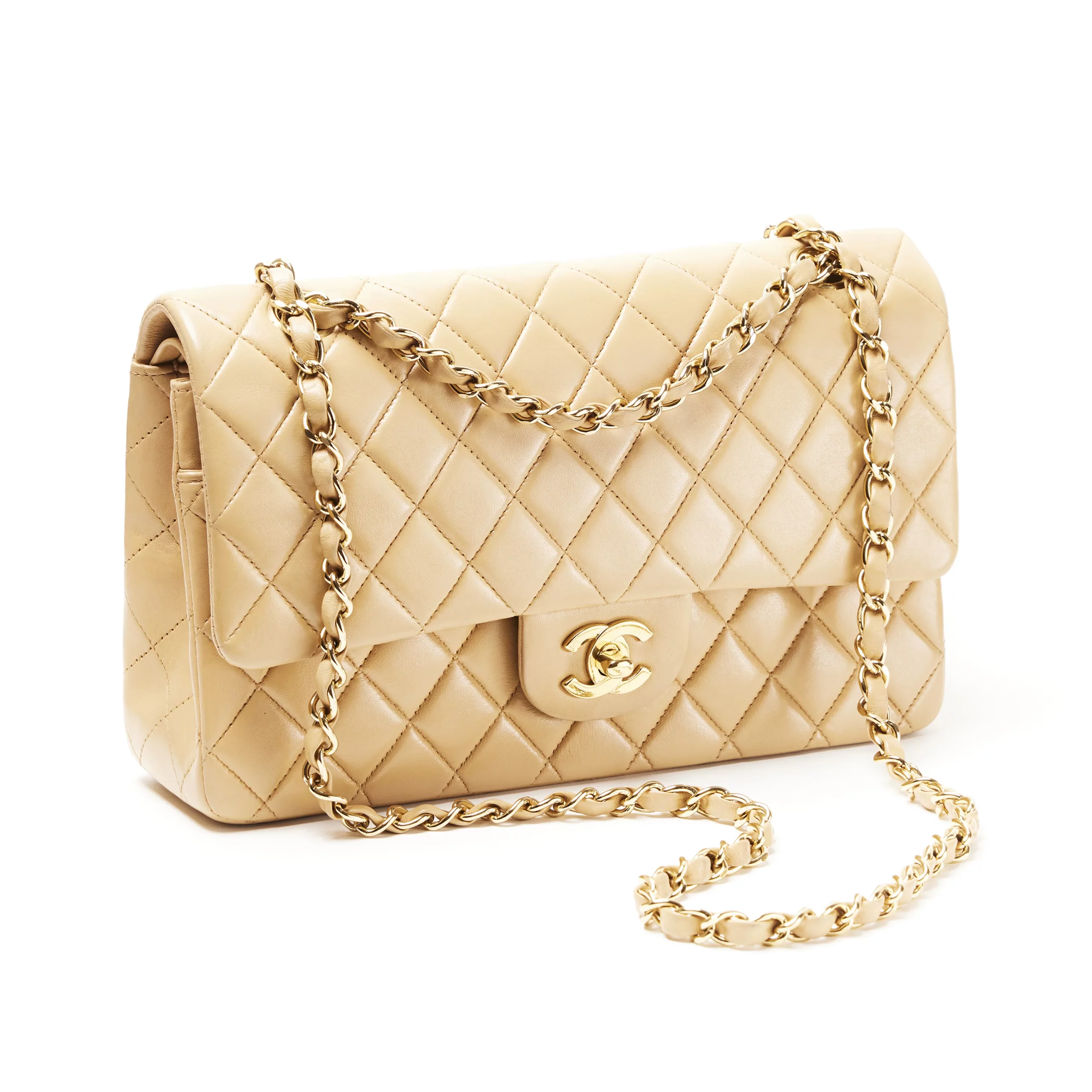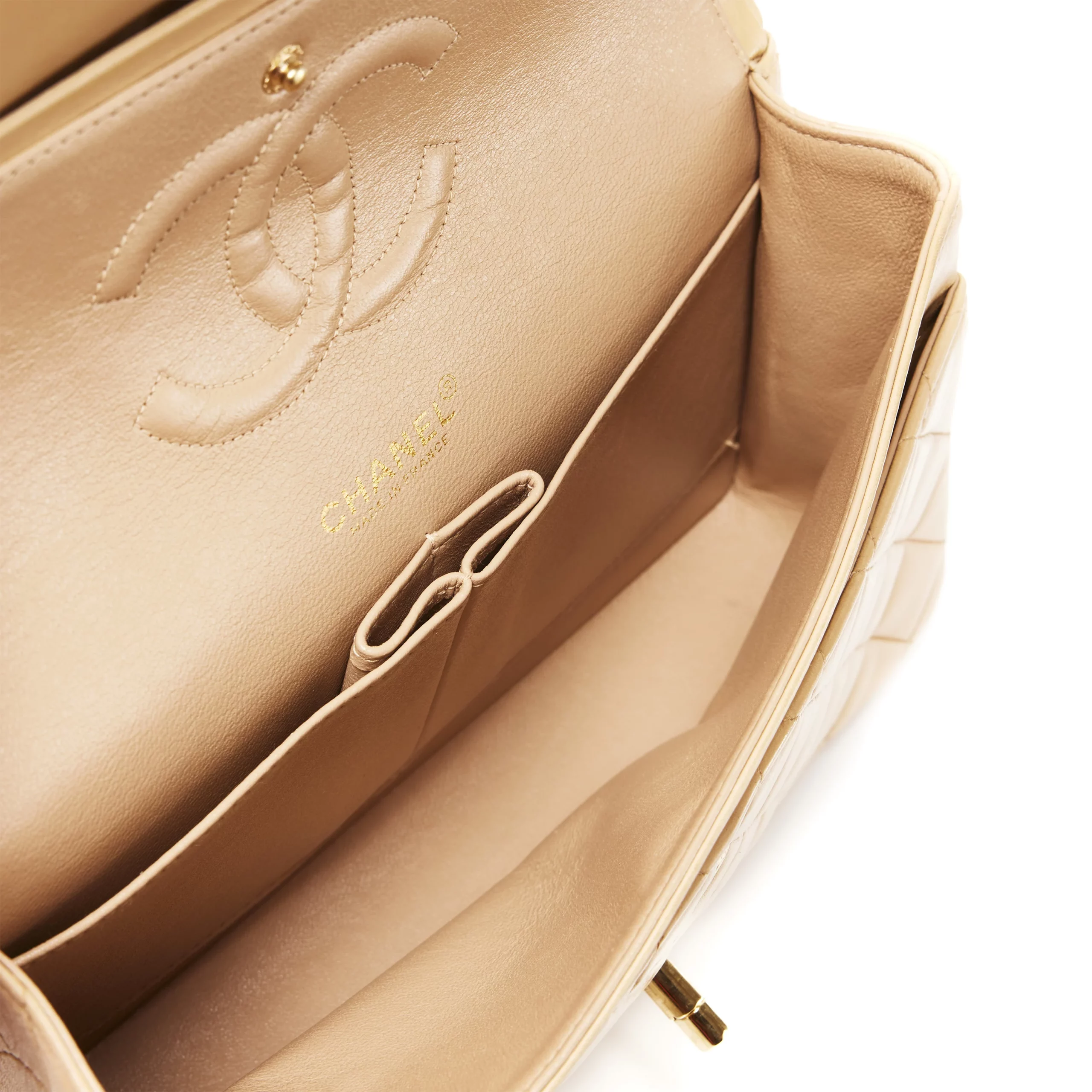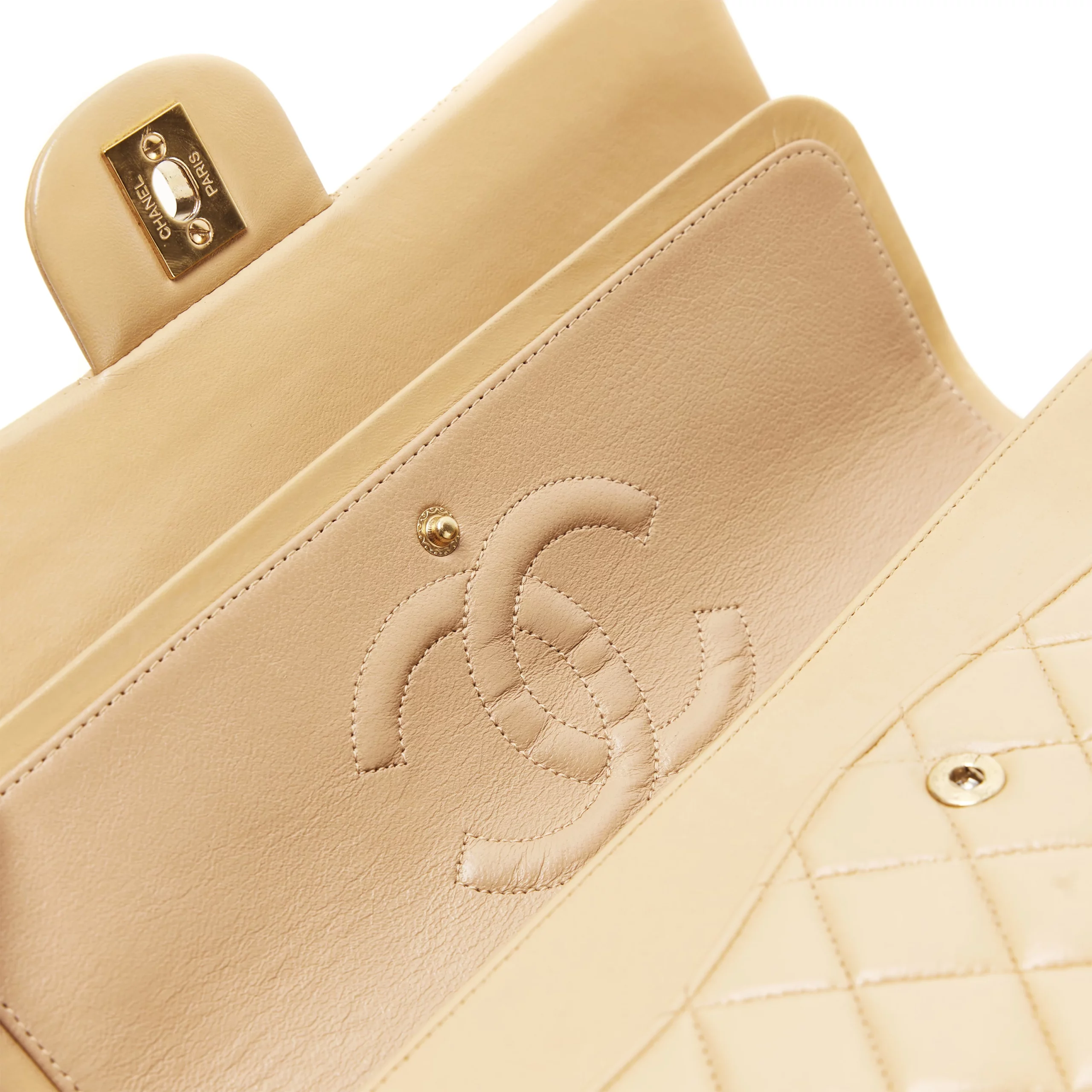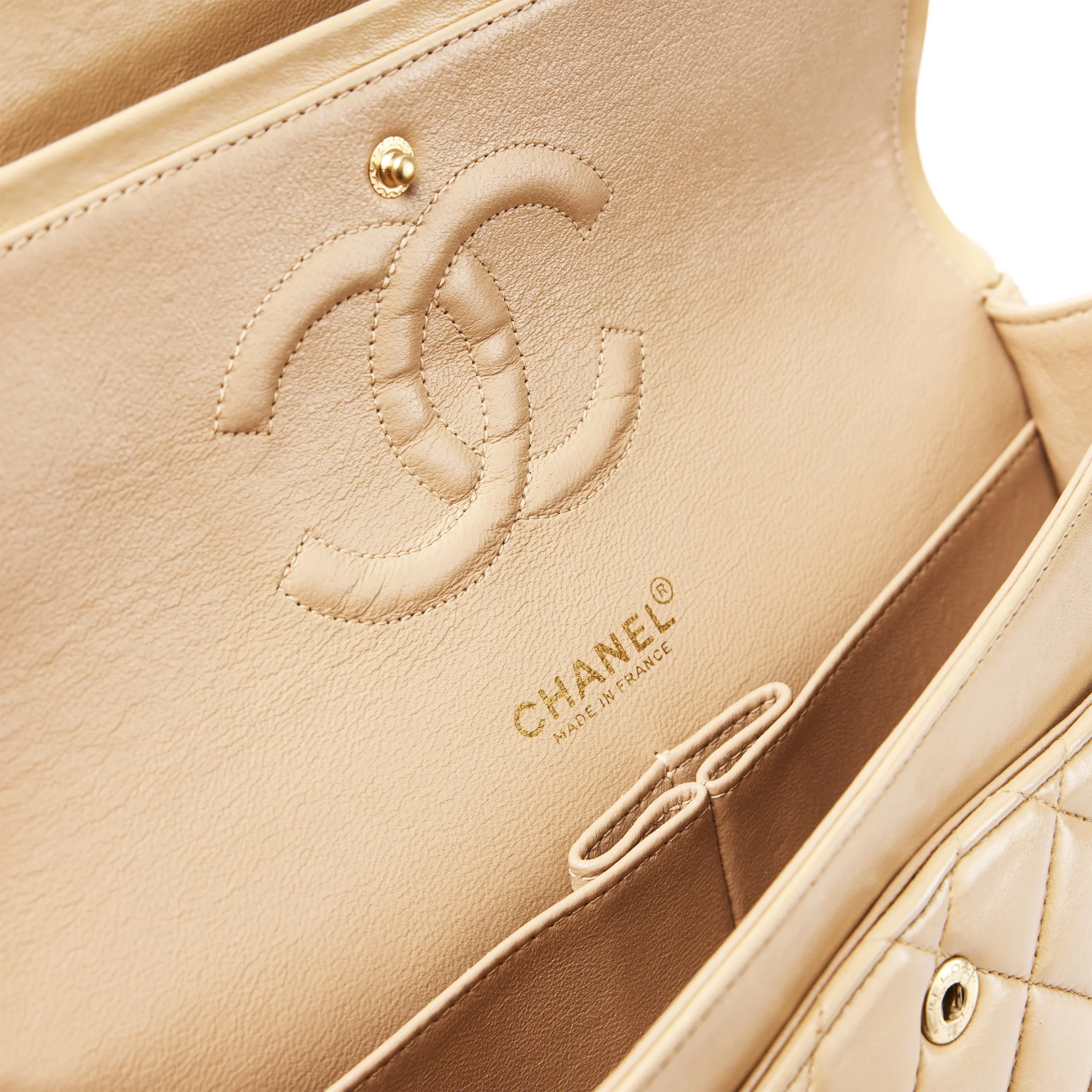 Chanel Classic Double Flap Medium Beige Lambskin Leather Bag