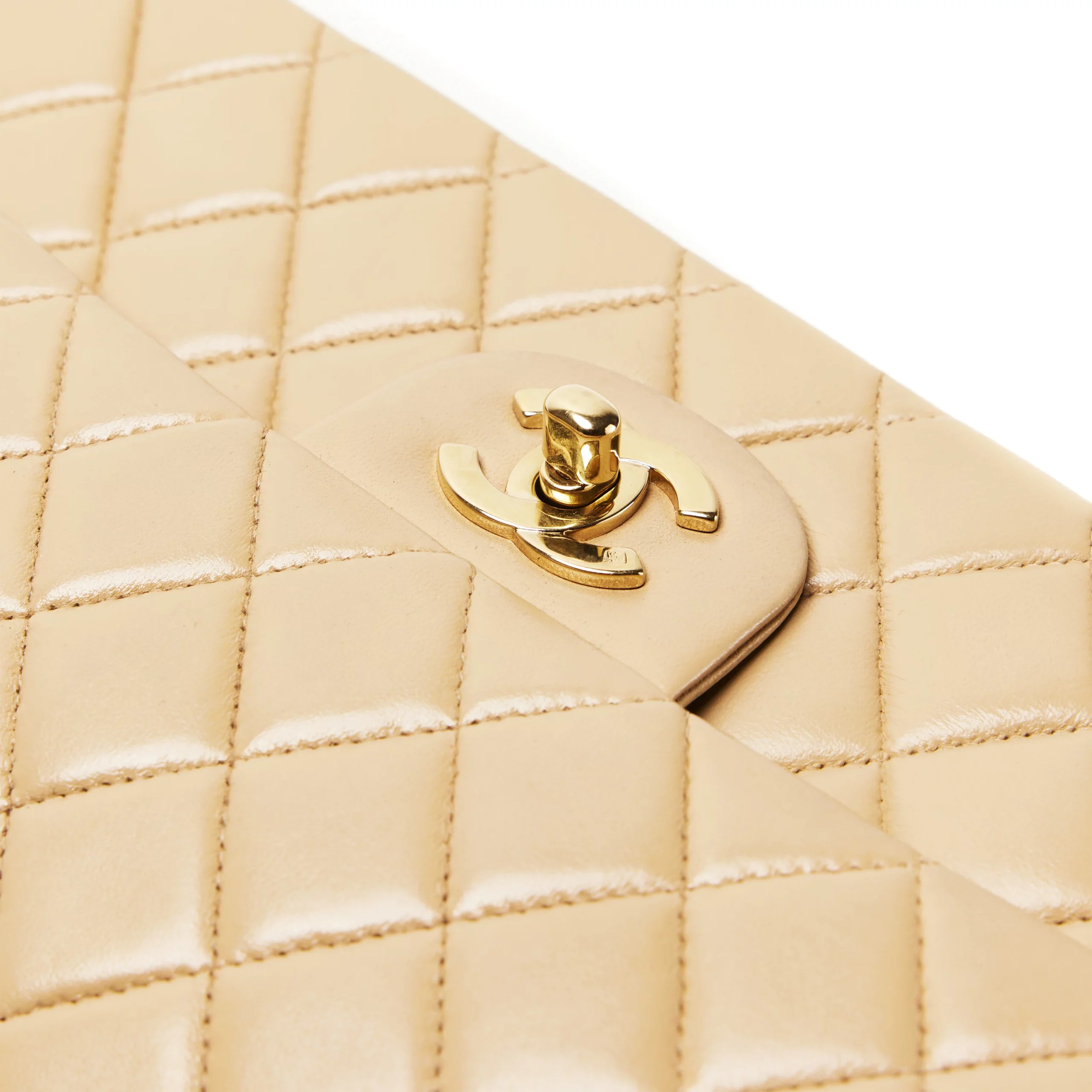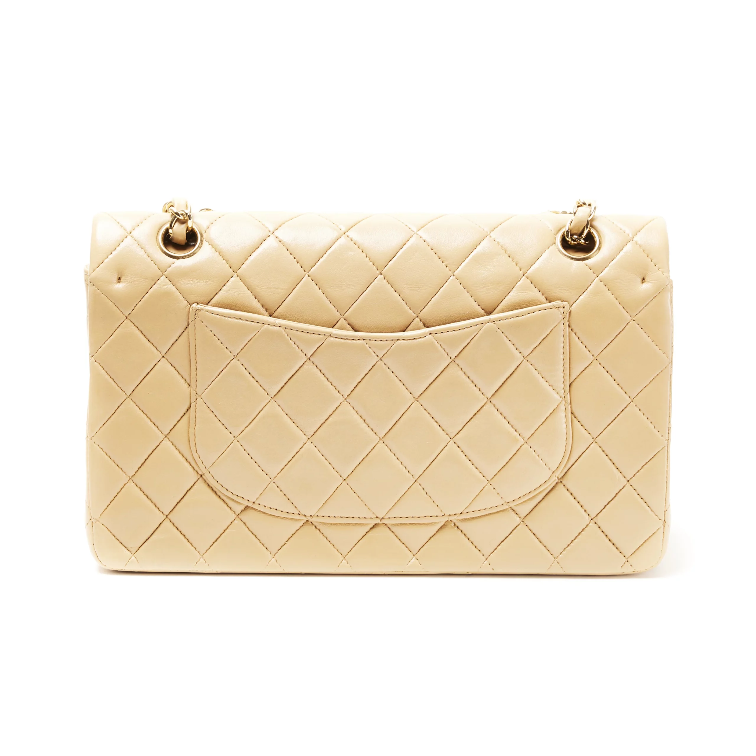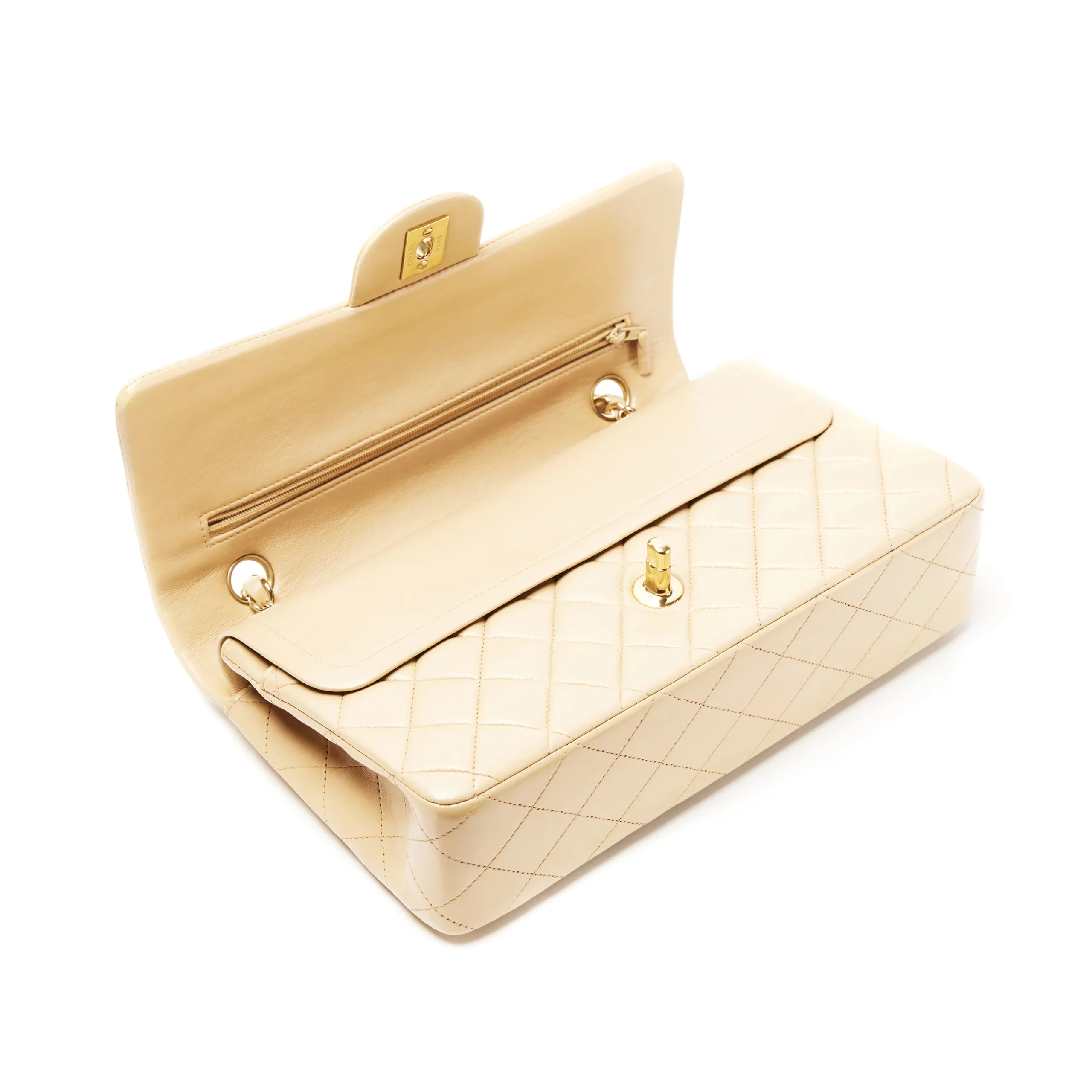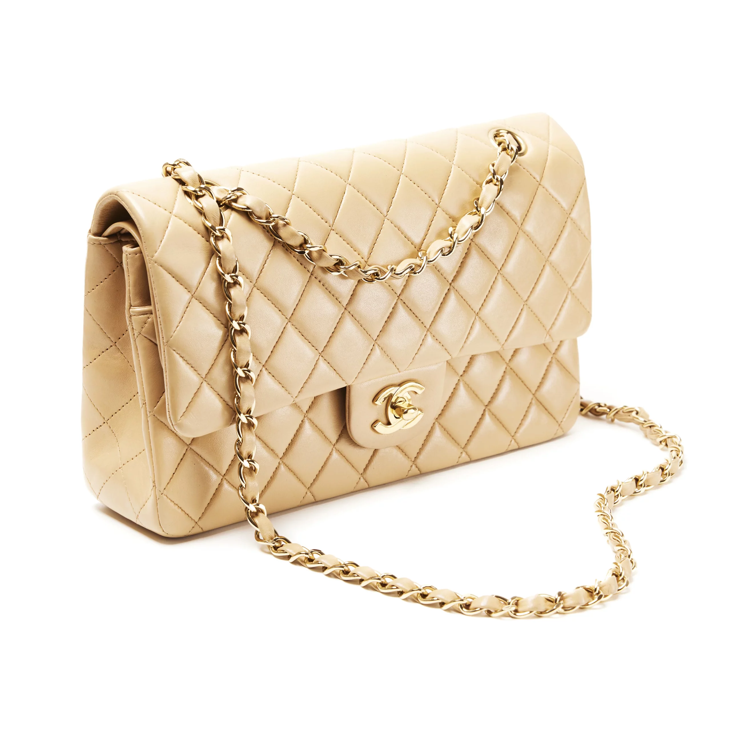 Chanel Classic Double Flap Medium Beige Lambskin Leather Bag