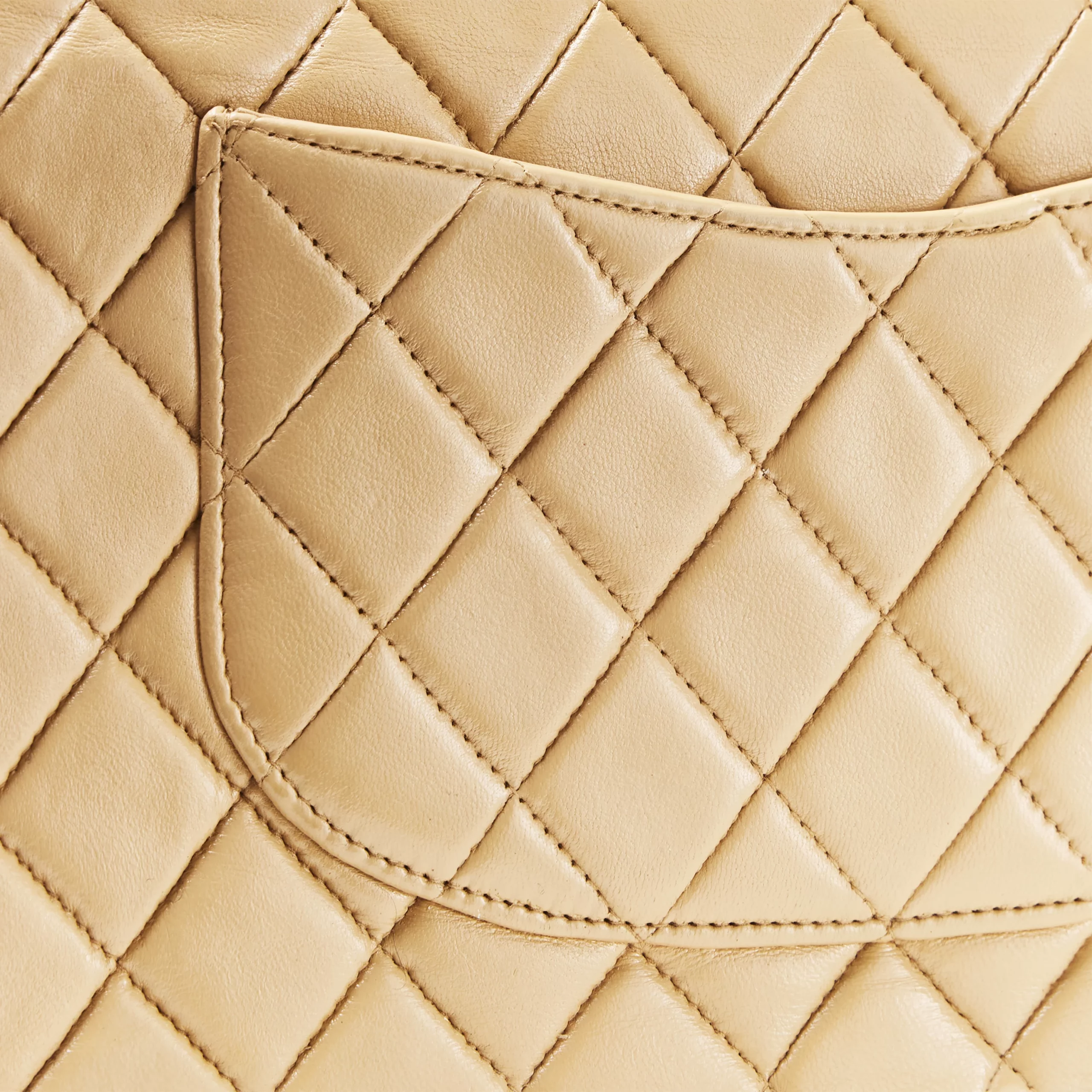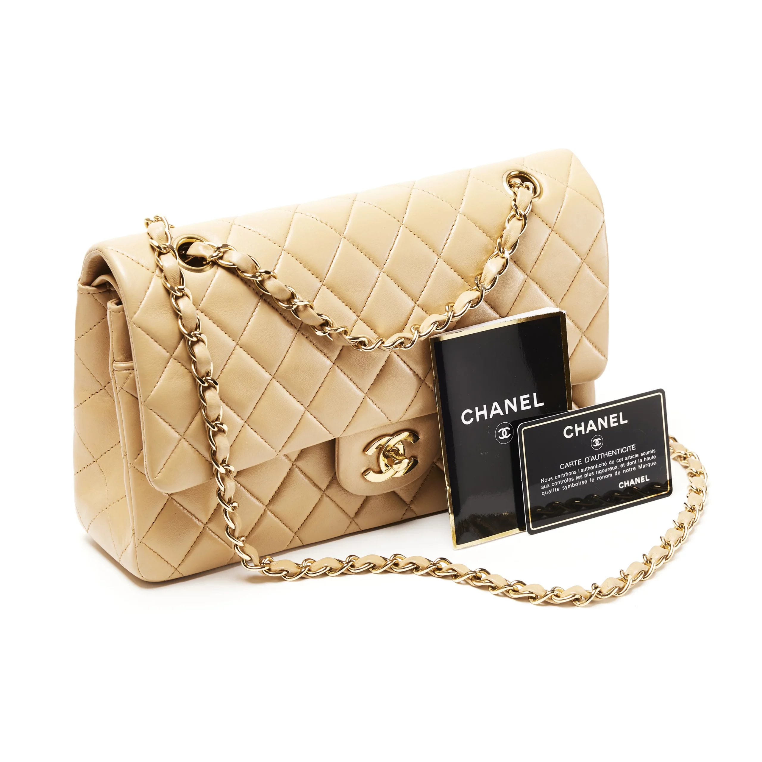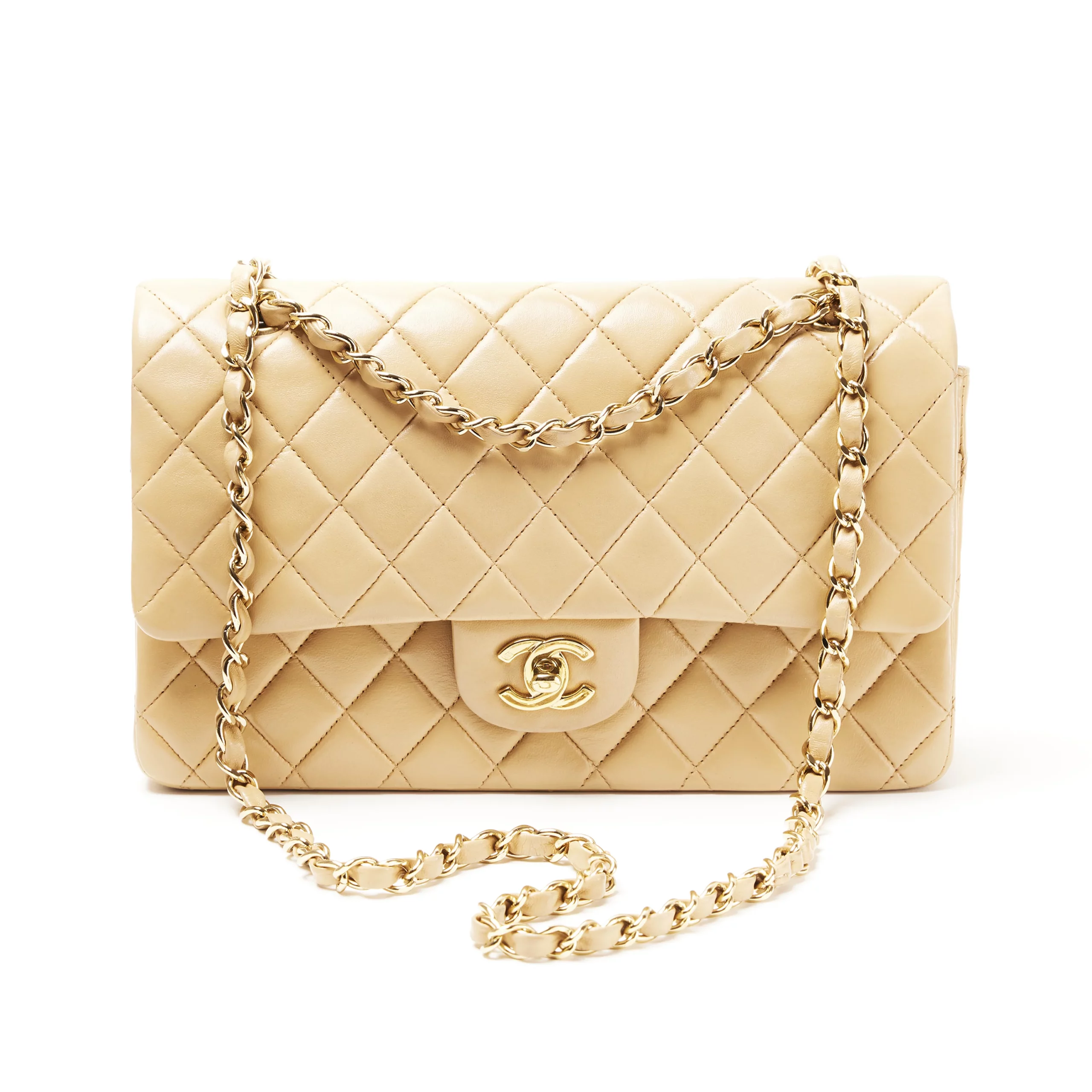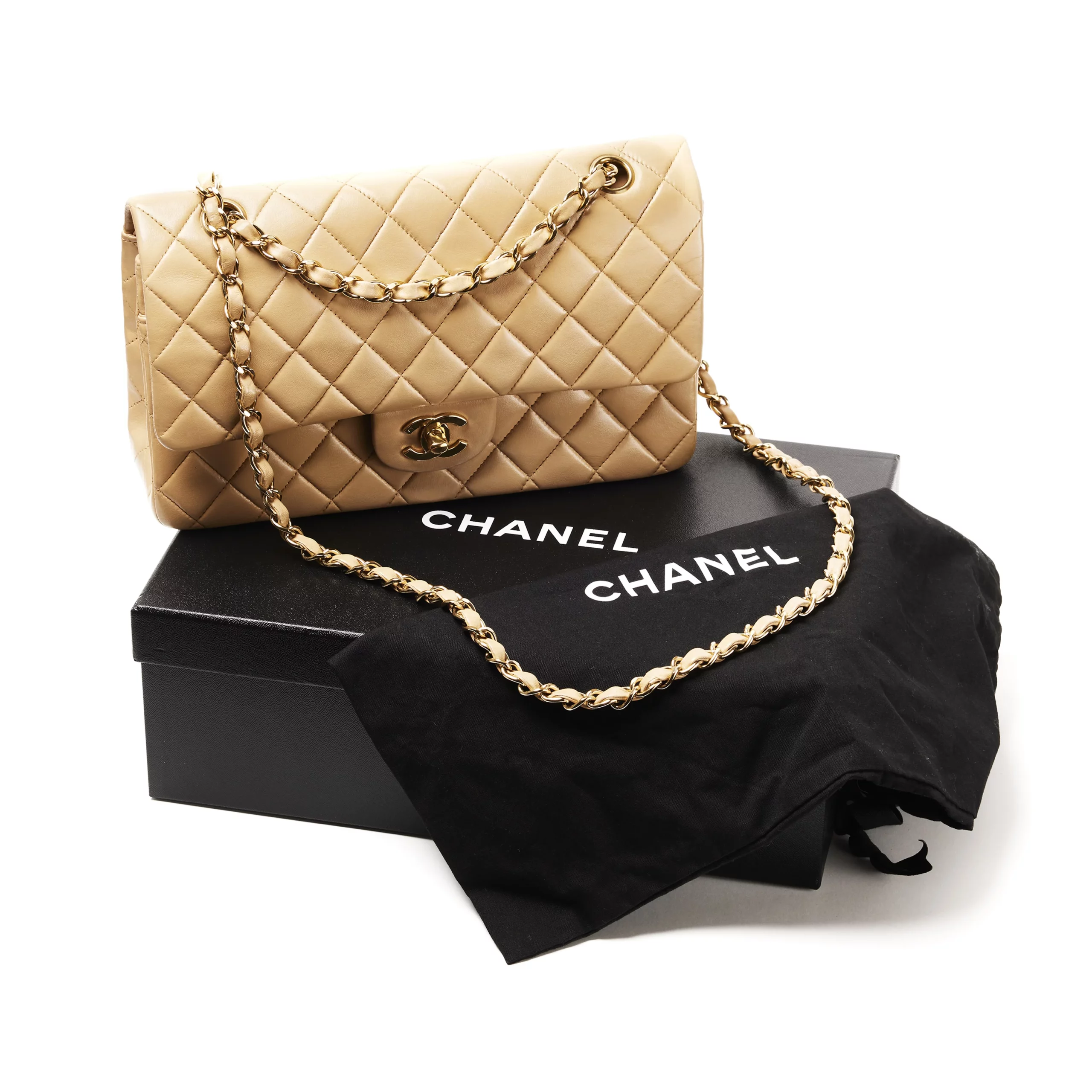 Chanel Classic Double Flap Medium Beige Lambskin Leather Bag
