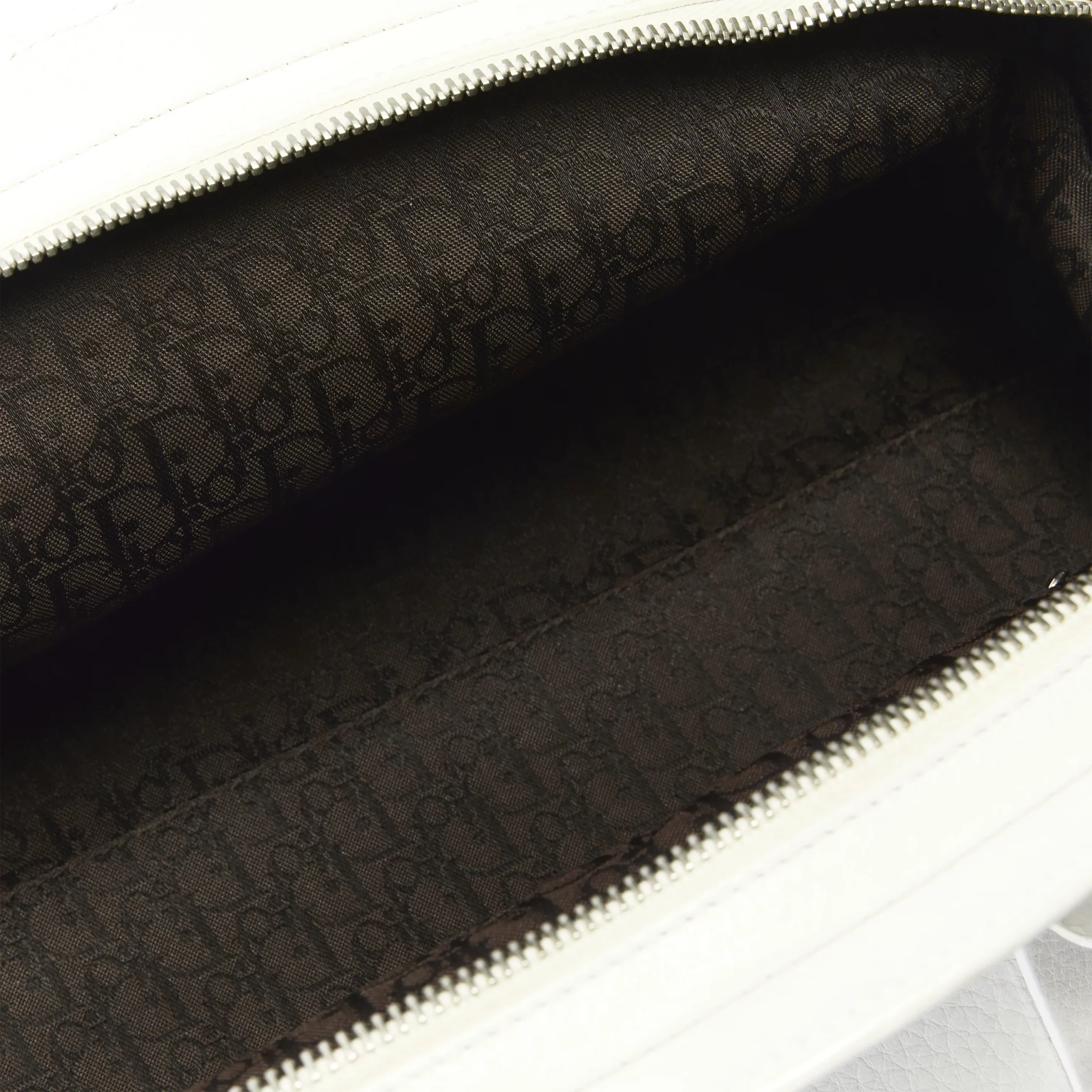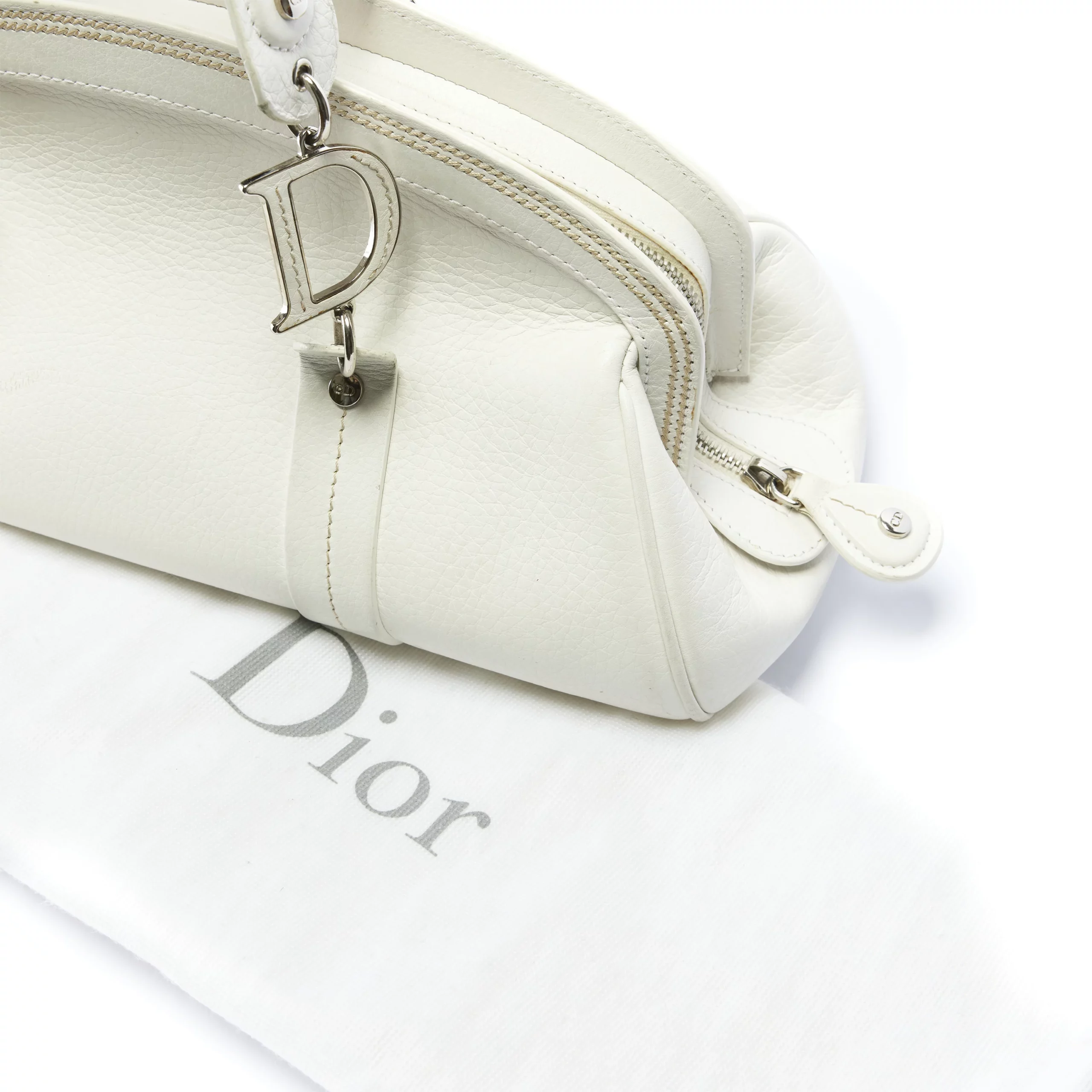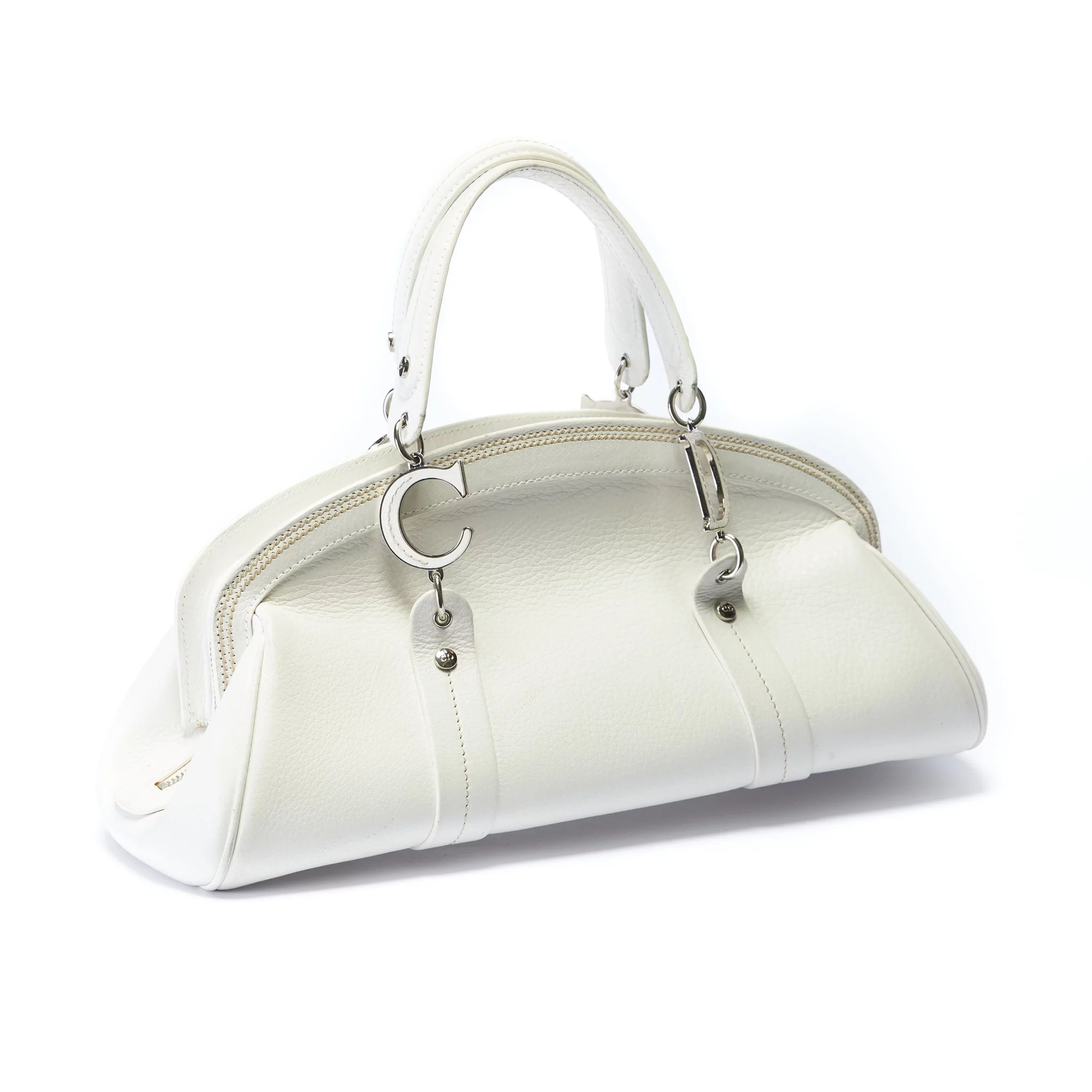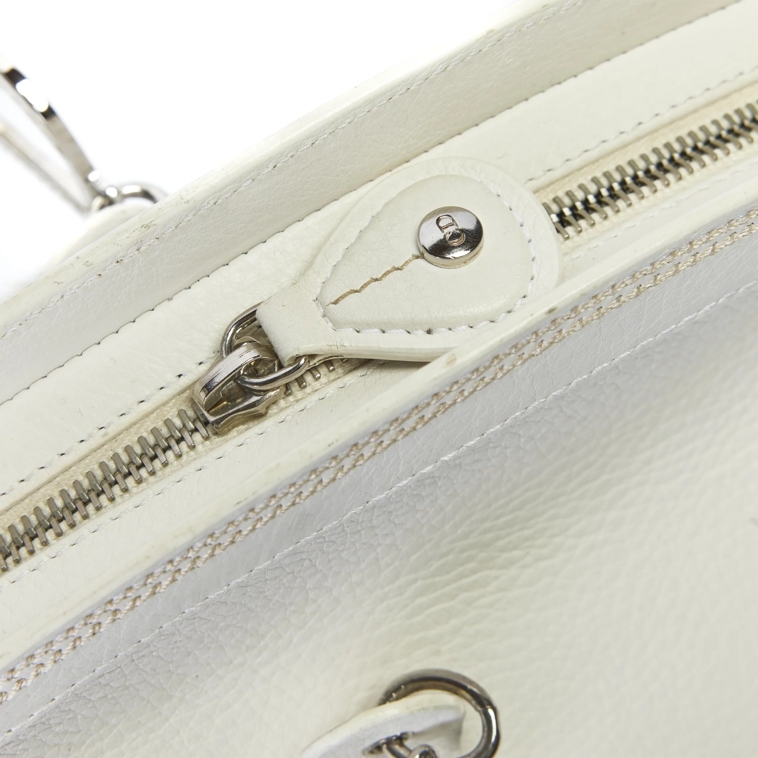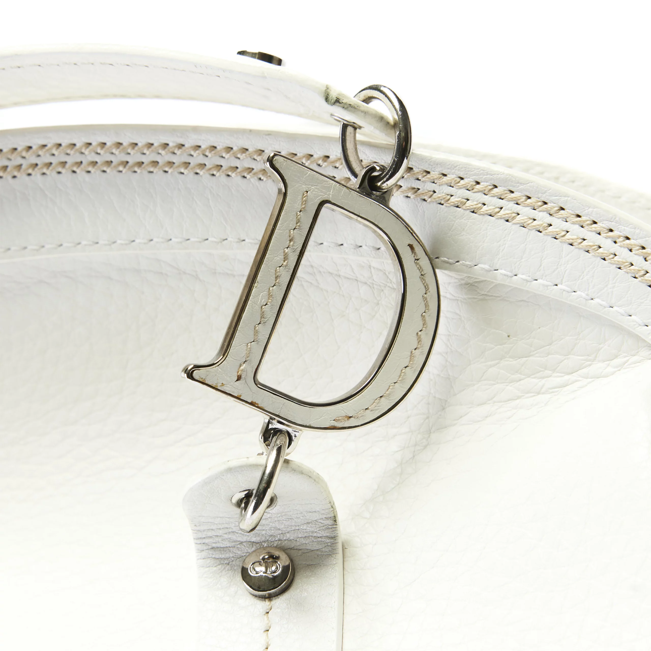 Christian Dior CD Logo White Grained Leather Bag