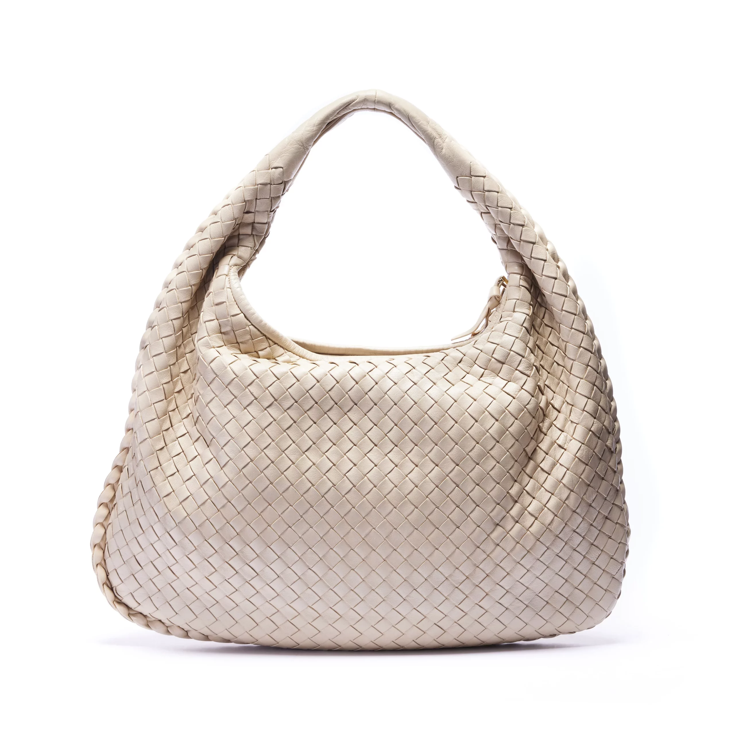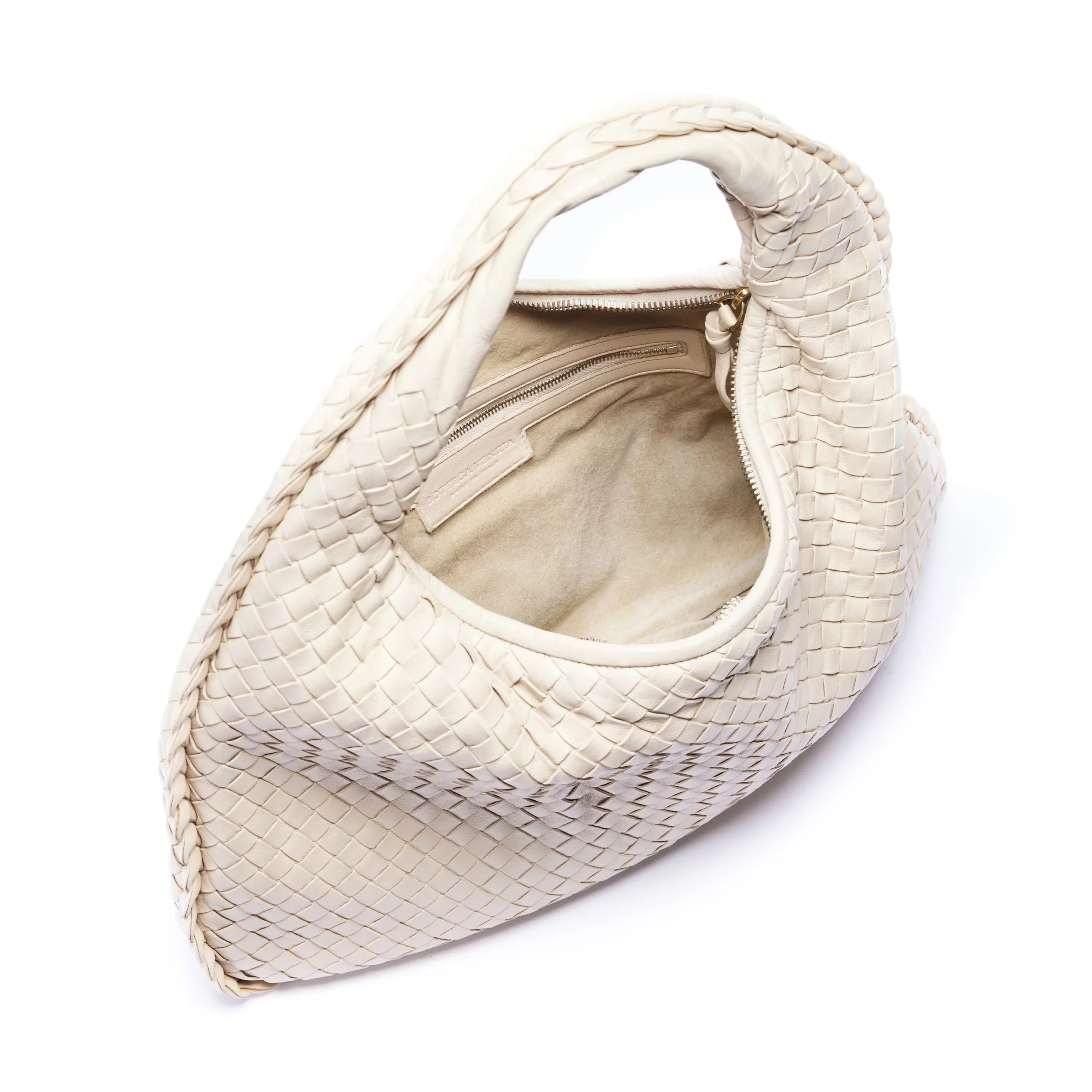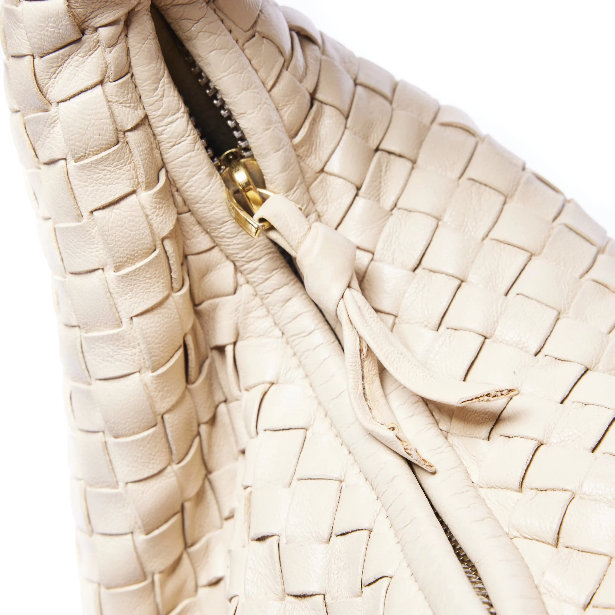 Bottega Veneta Hobo Intrecciato Small Beige Leather Bag