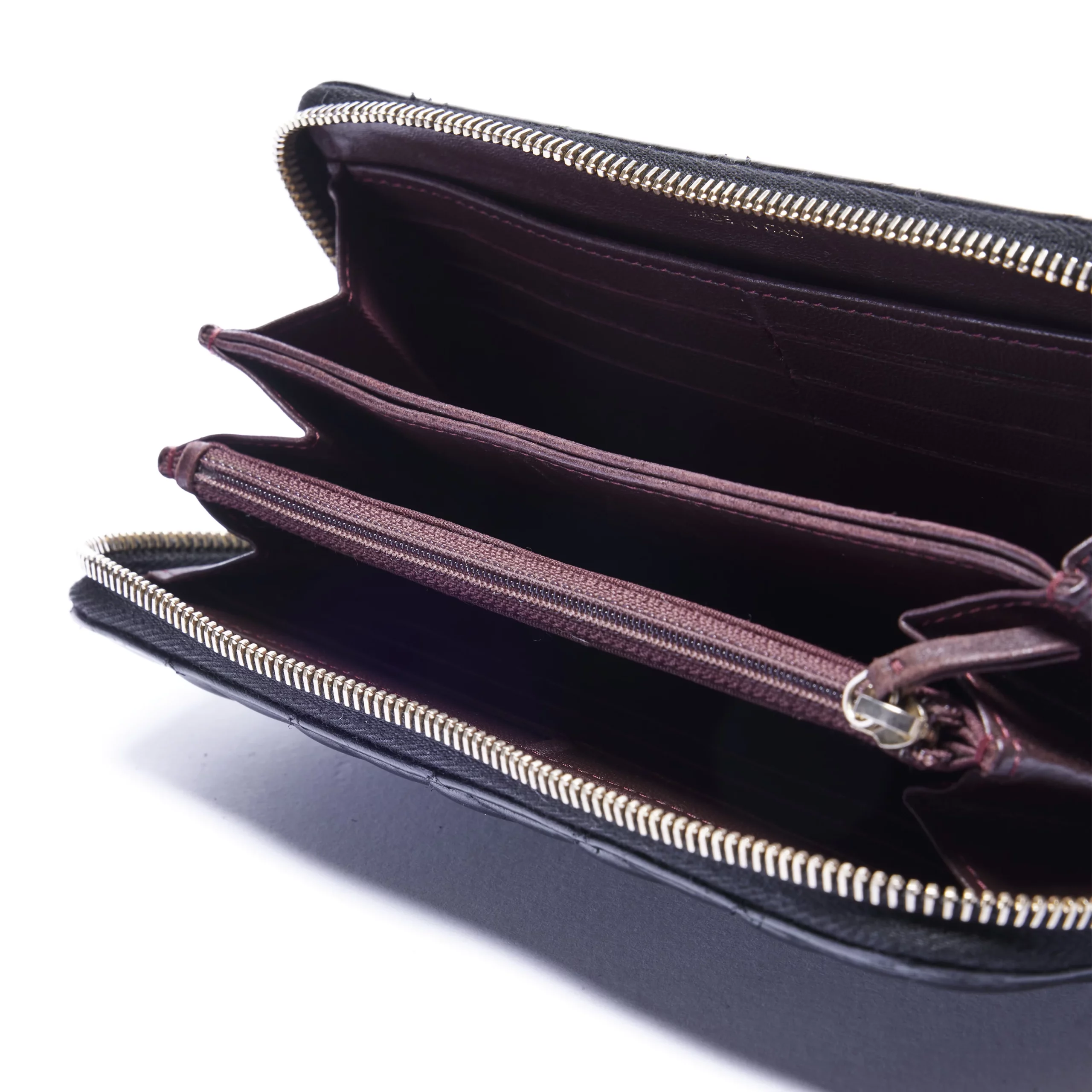 Кошелёк прошёл реставрацию сторонней мастерской, золотое покрытие на логотипе слегка поцарапано.