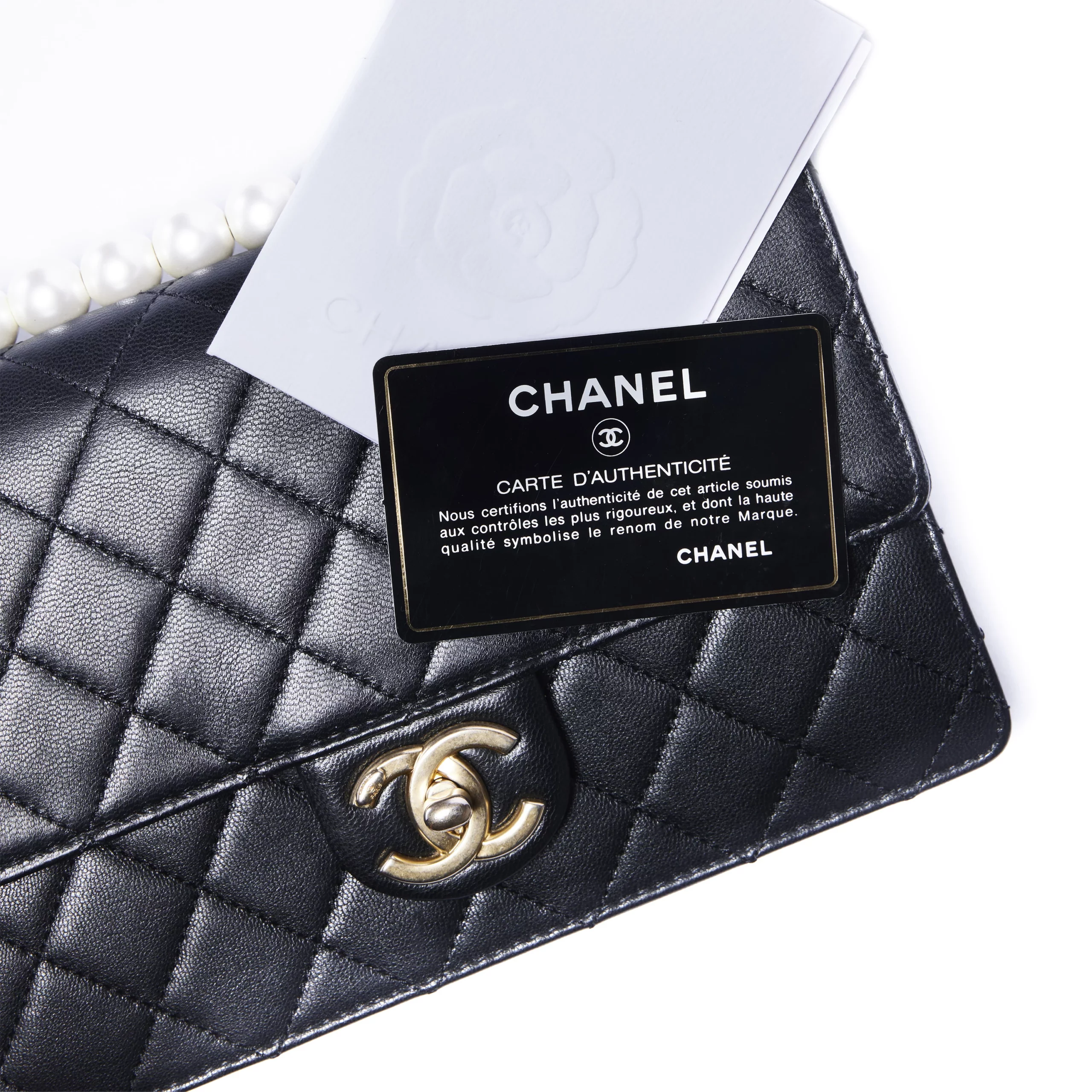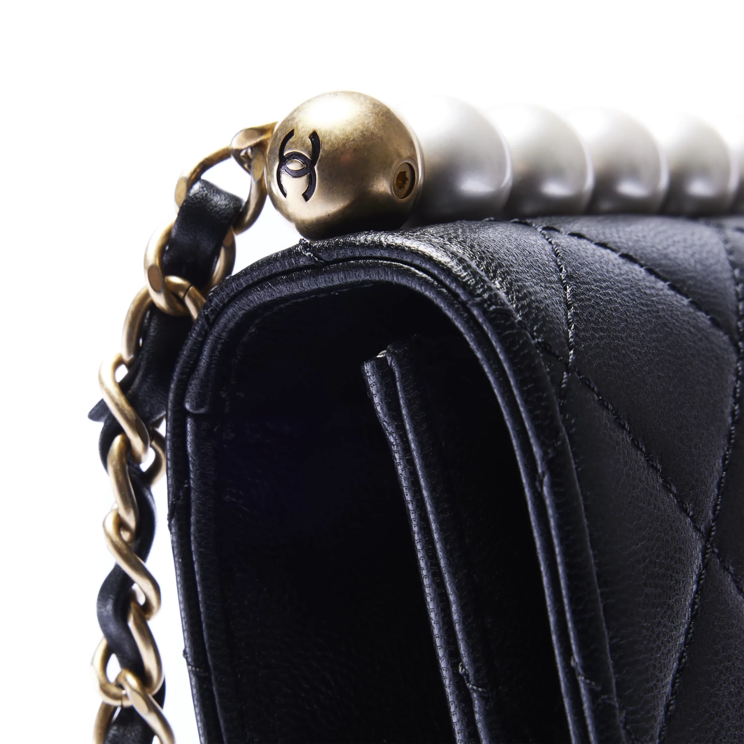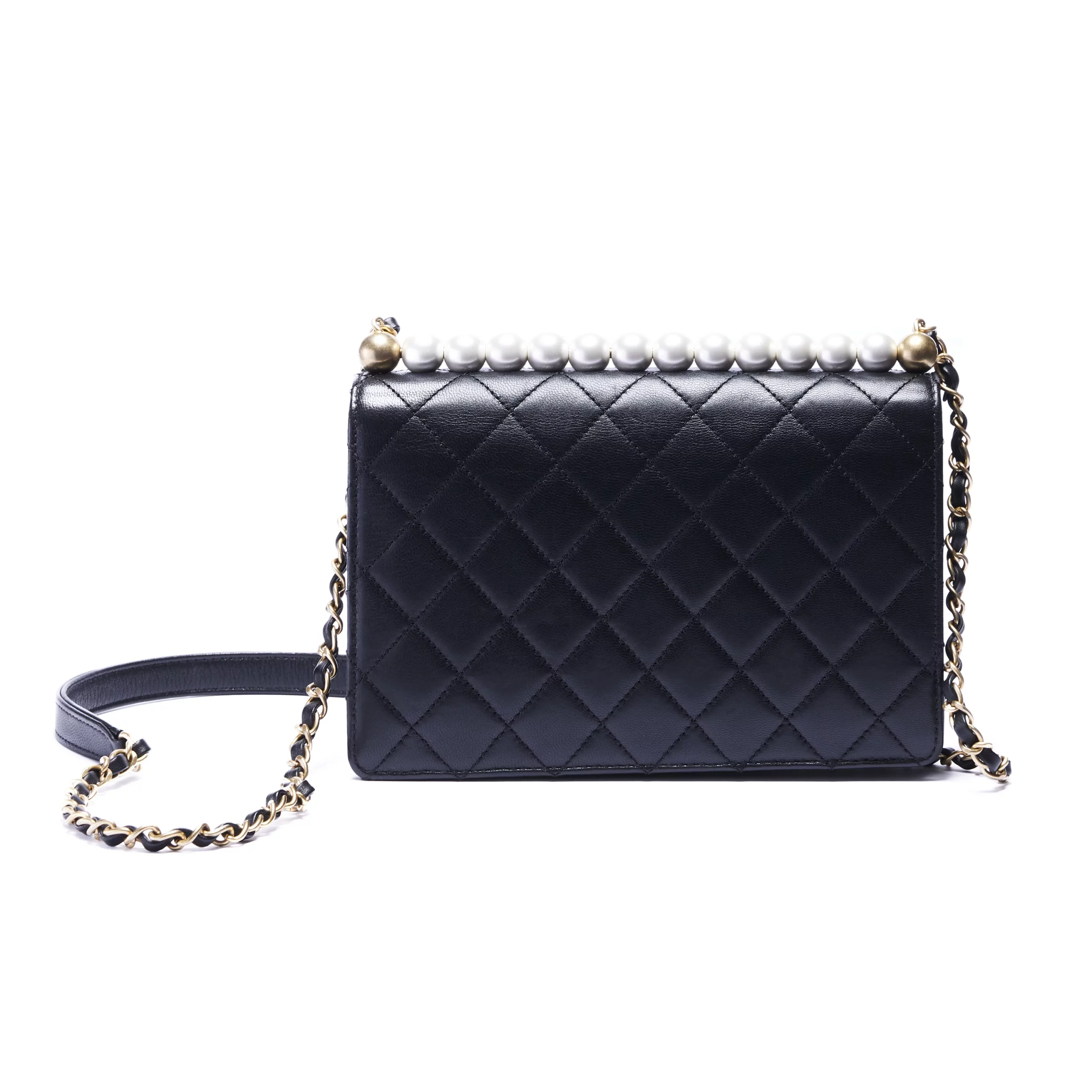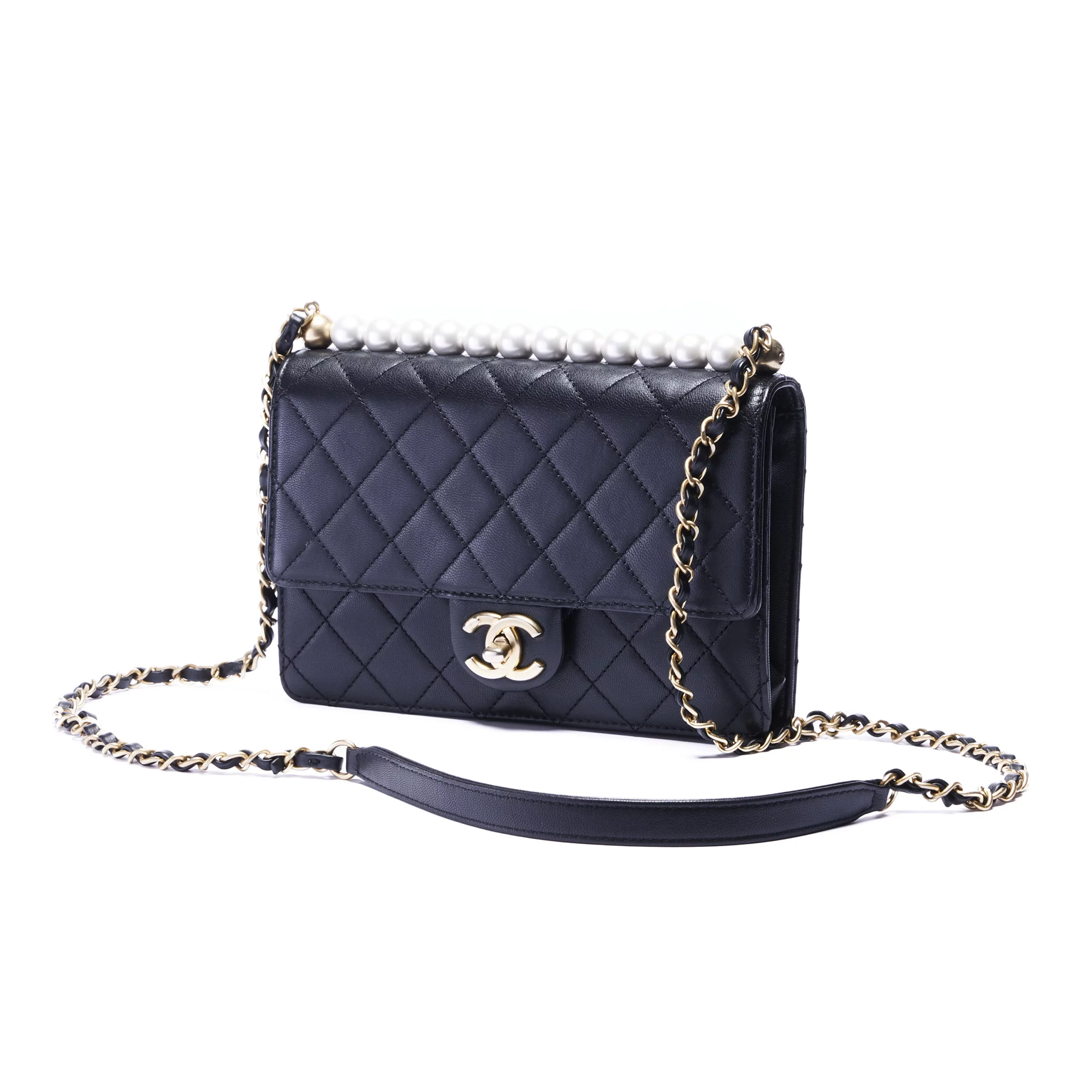 Chanel Quilted Lambskin Pearl Flap Crossbody Leather Bag